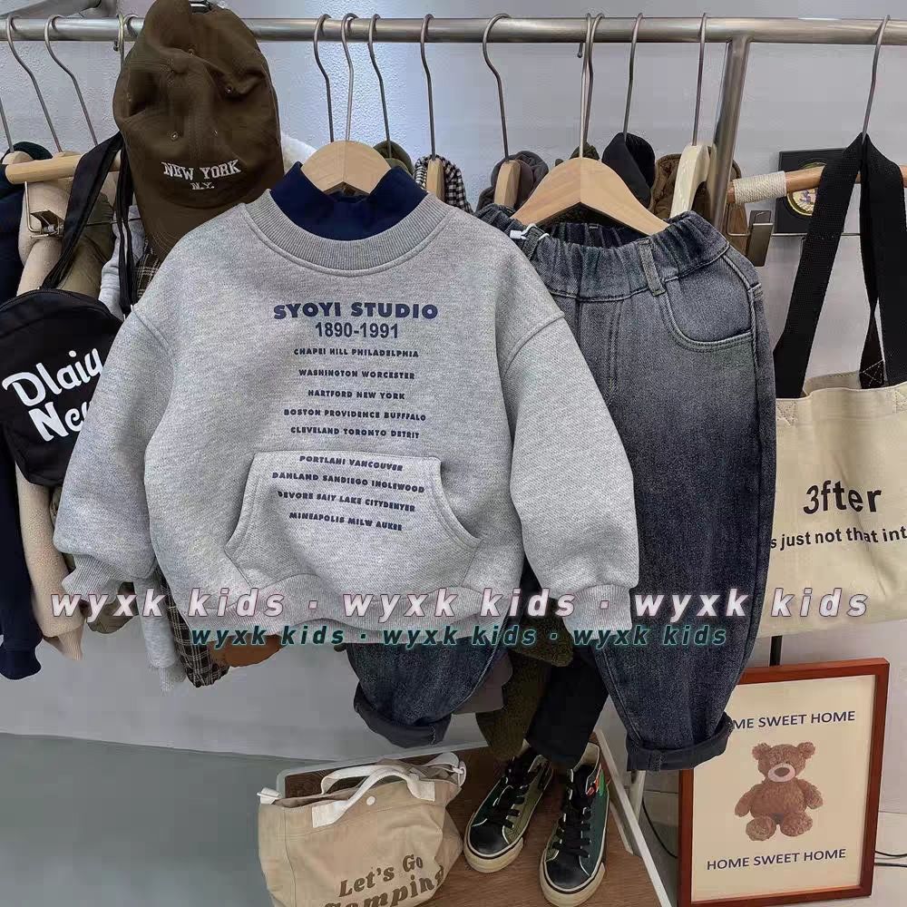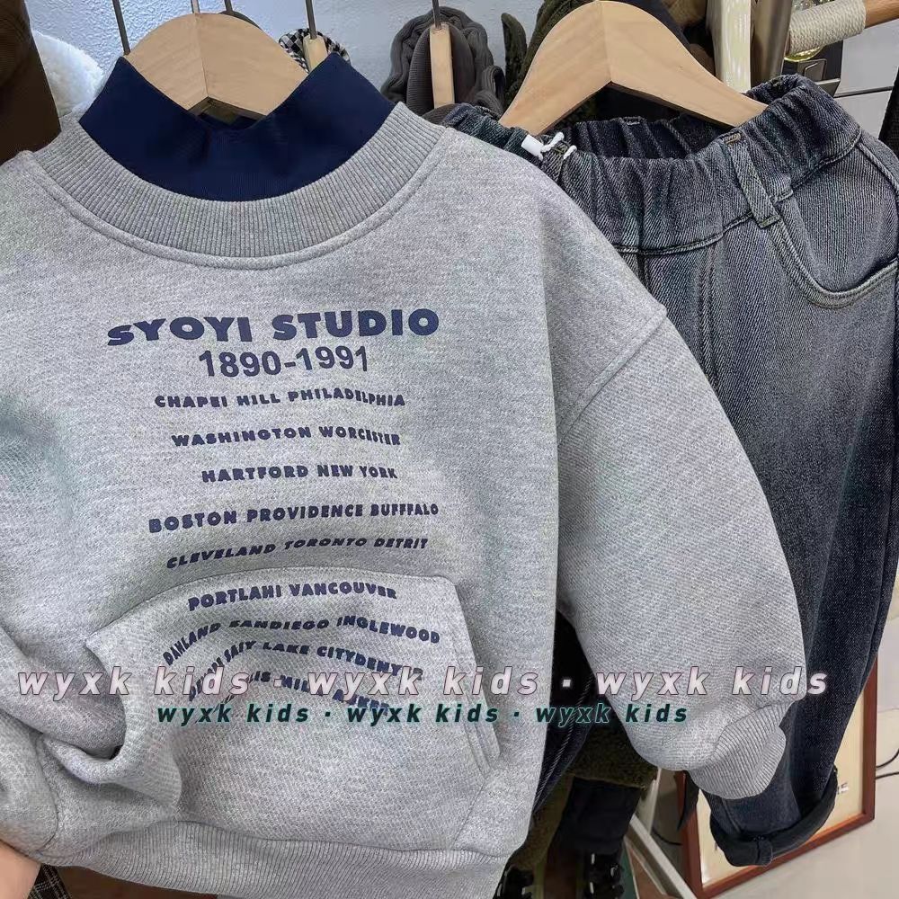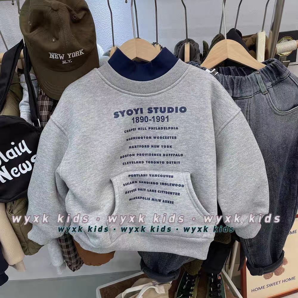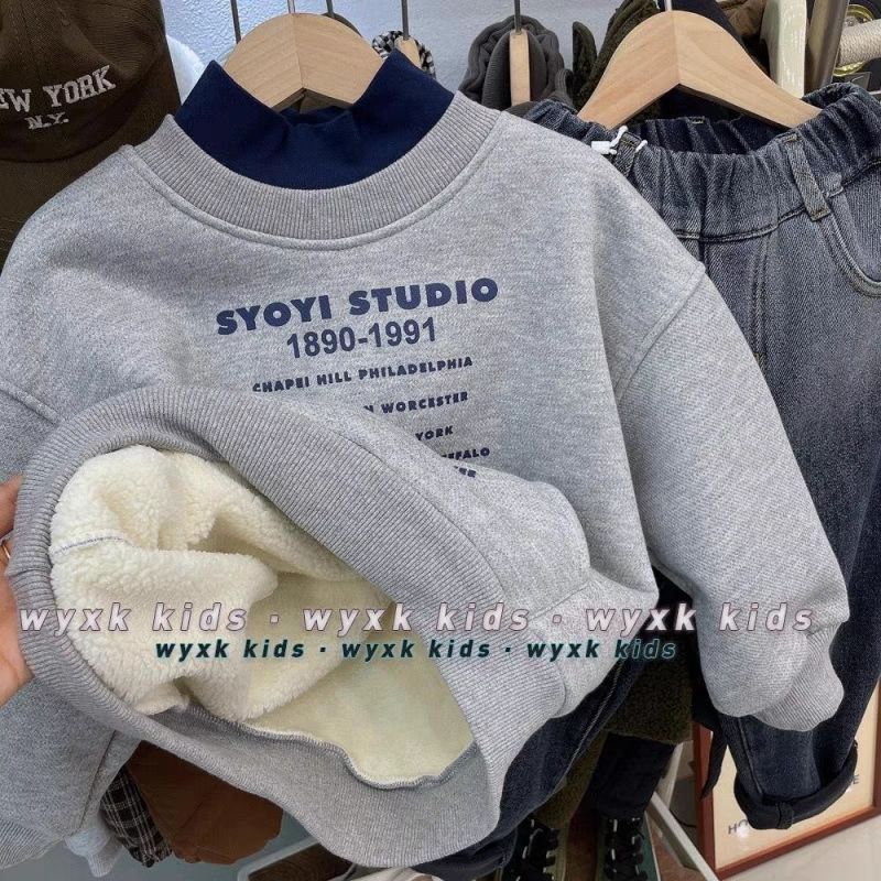 남자들의 기모 스웨트 셔츠 새로운 겨울 두꺼운 알파카 양털 중고 목 따뜻한 탑 중소 어린이를위한 트렌디 0135A008스토어 가기