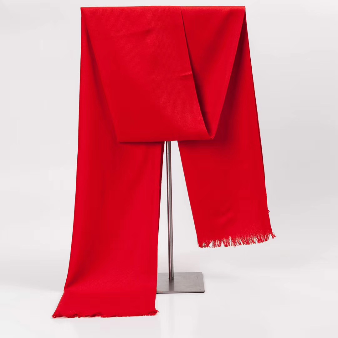부티크 레드 스카프 인쇄 로고 중국 빨간 긴 수염 뽕나무 실크 스카프 도매 자수 인쇄 연례 회의 기업 활동