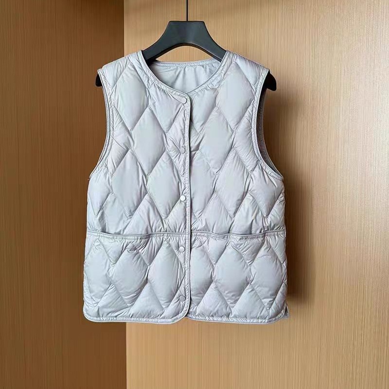 90% 백색 오리털 경량 다운 조끼 여성용 숏 스타일 2025 가을 겨울 신상 다운 조끼 라운드넥 코트 트렌디