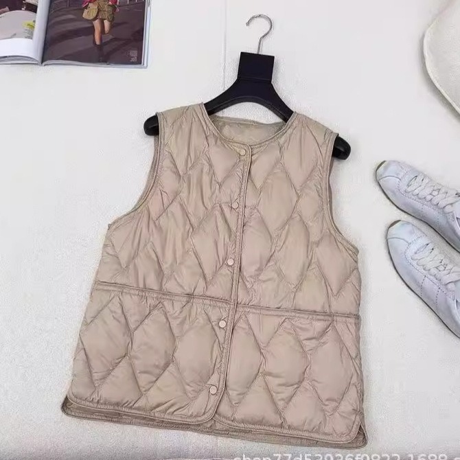 90% 백색 오리털 경량 다운 조끼 여성용 숏 스타일 2025 가을 겨울 신상 다운 조끼 라운드넥 코트 트렌디스토어 가기