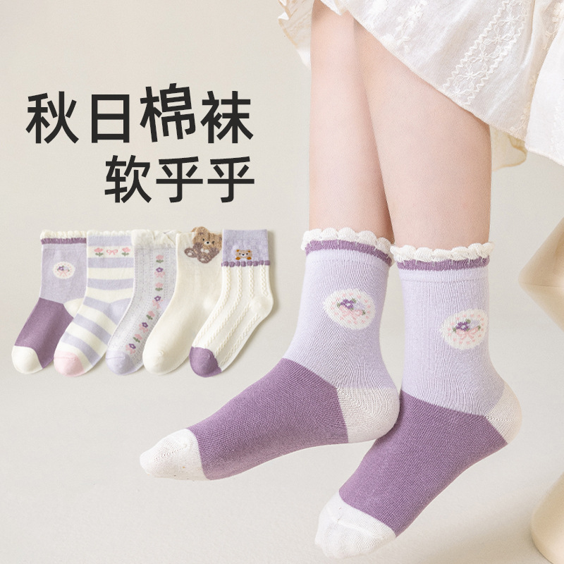 어린이 양말 가을과 겨울 큰 소녀는면 만화 튜브 양말 탈취제 땀 흡수성 일본 올 매치 스포츠 양말을 빗질했습니다.스토어 가기