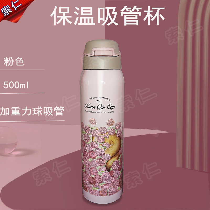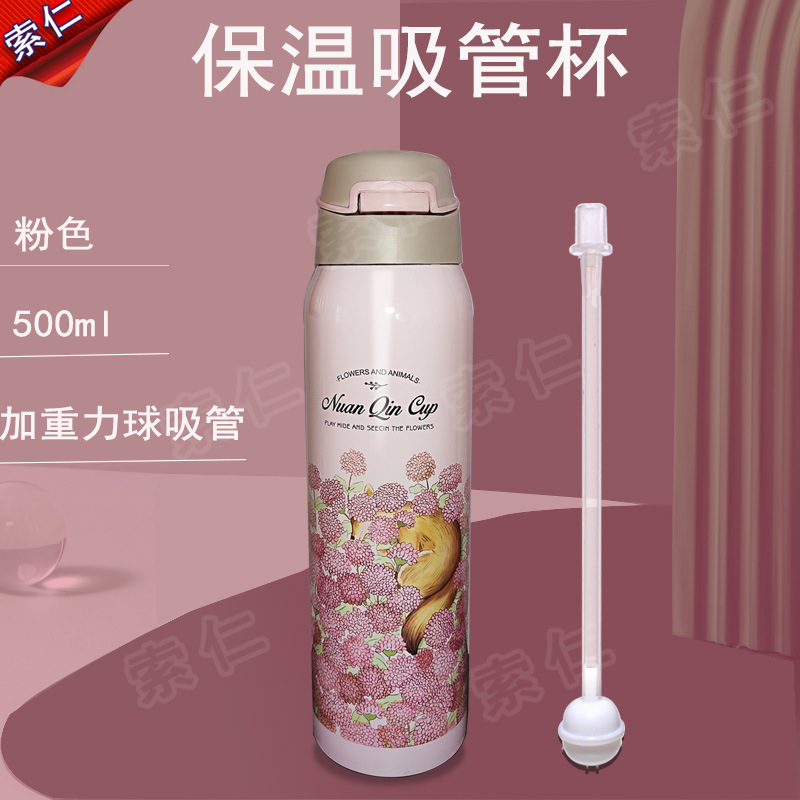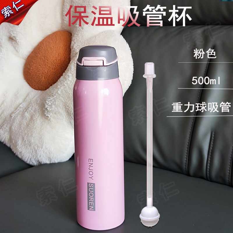 • ♥❥❤❣❣핑크 보온 케어 빨대컵 500ml [중력볼 제외]❣❣❤❥♥