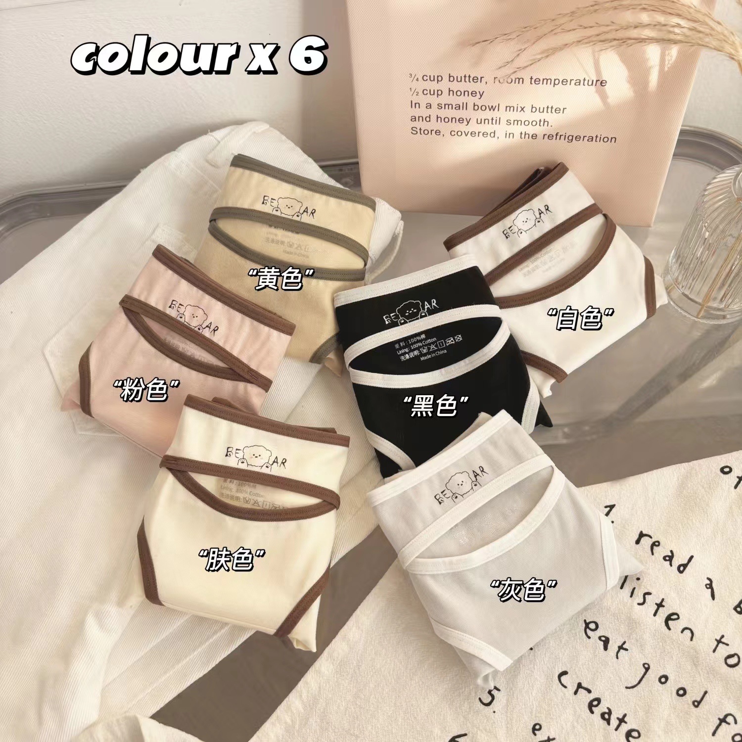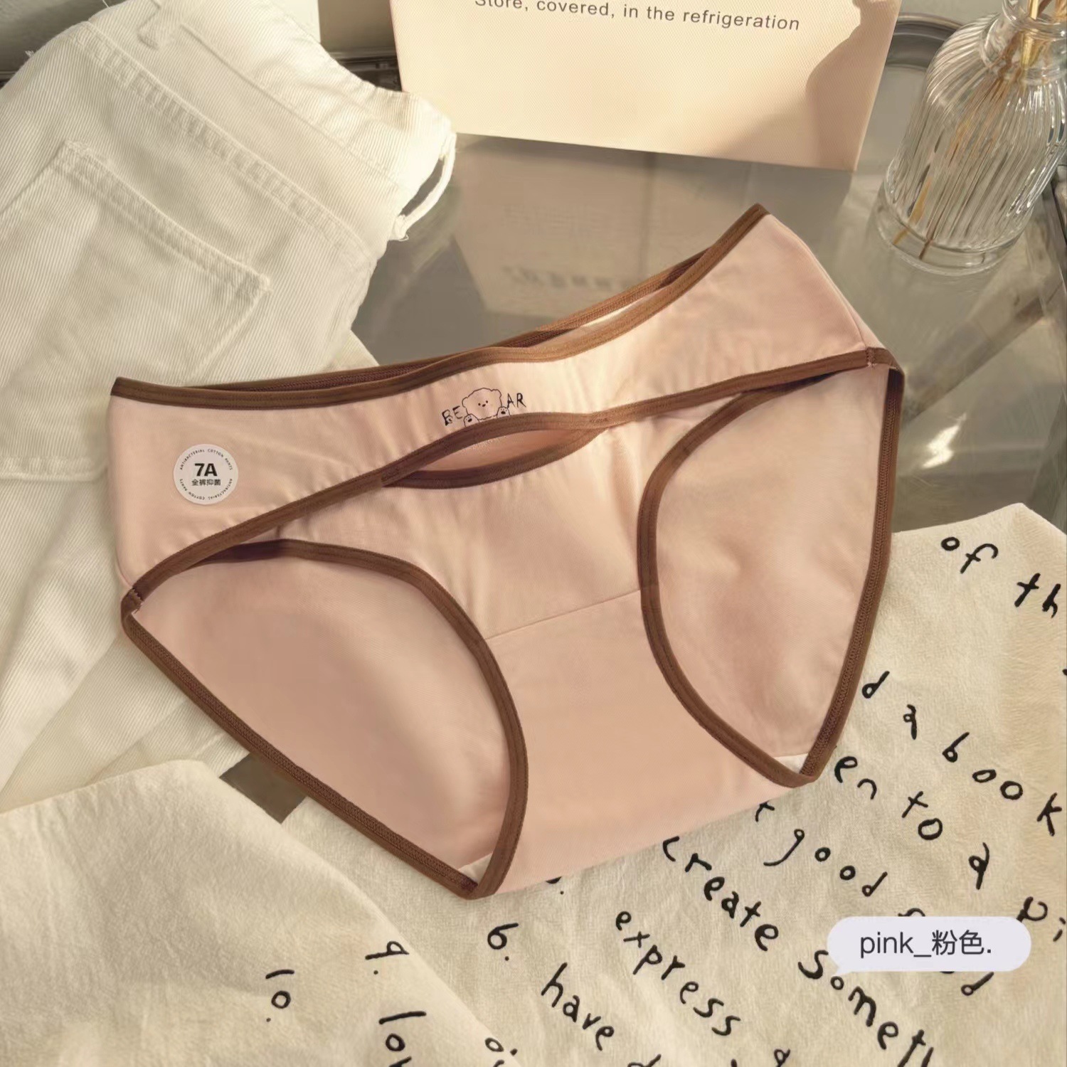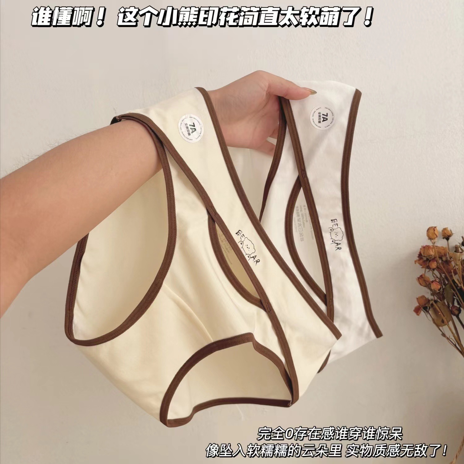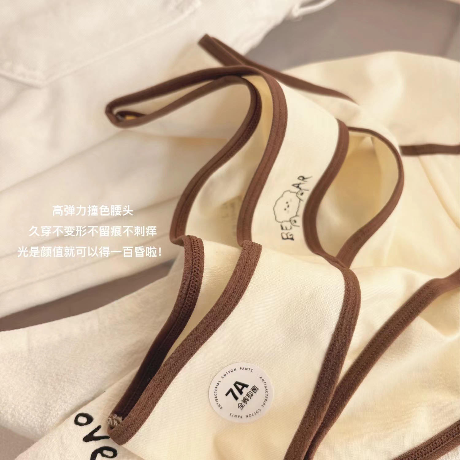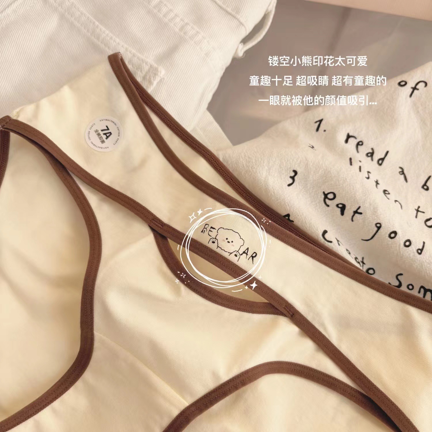 7A 하트 중공 면화 속옷 소녀를위한 간단한 명암 컬러 베어 인쇄 섹시 할로우 코튼 통기성 브리프