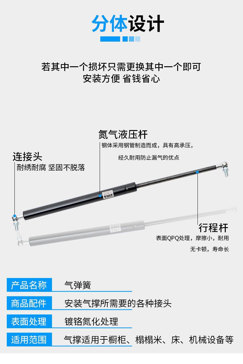 침대용 고하중 유압로드, 광고 칼럼, 가스 스프링, 백박스, 자동차용 가스 스트럿, 공압로드, 유압 텔레스코픽 지지대스토어 가기