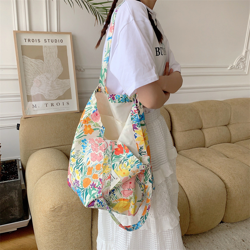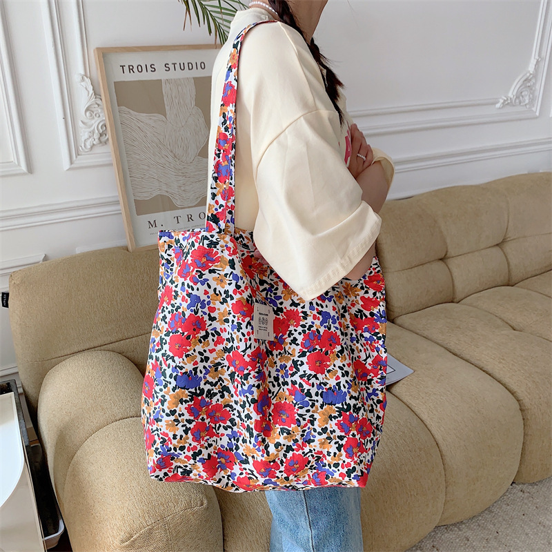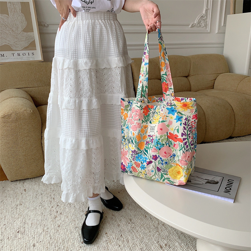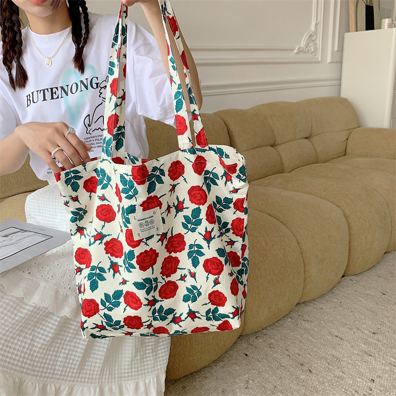 26101 여름 꽃 헝겊 가방 가방 대용량 장미 캔버스 가방 비치 백 쇼핑백 어깨 가방스토어 가기