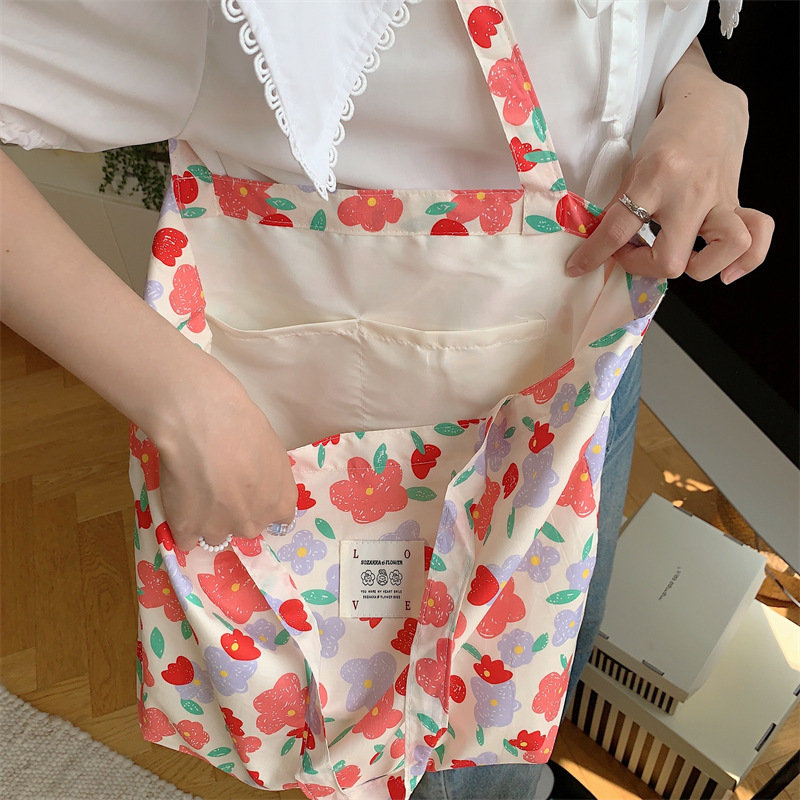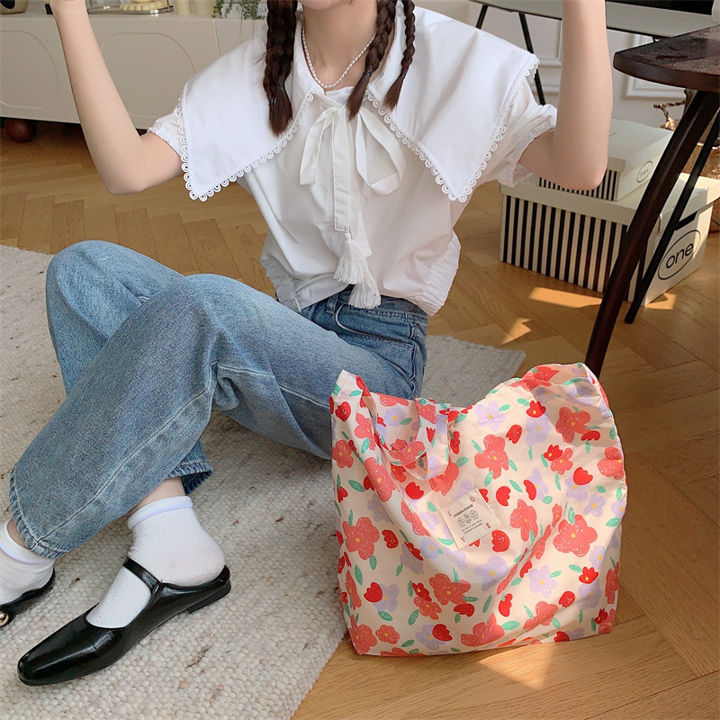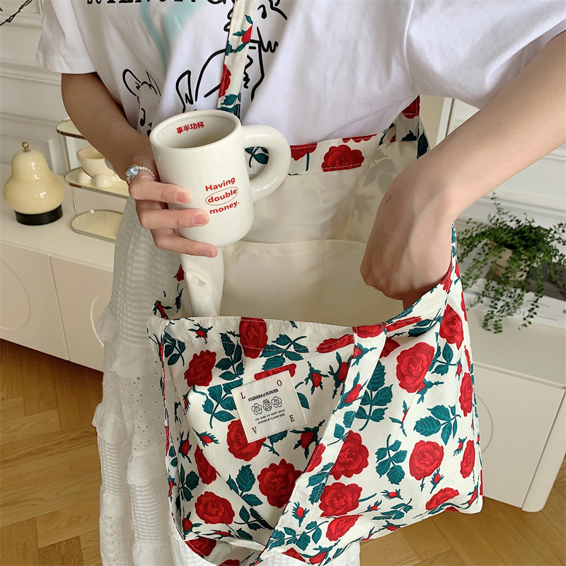 26101 여름 꽃 헝겊 가방 가방 대용량 장미 캔버스 가방 비치 백 쇼핑백 어깨 가방