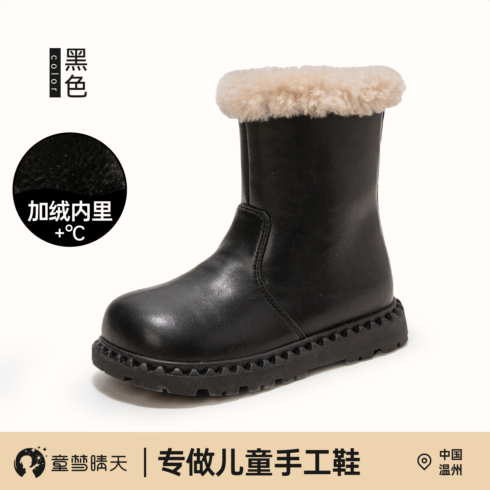 소녀 부츠 블랙 마틴 부츠 2024 새로운 겨울 어린이 기모 두 면 신발 큰 어린이 서양식 가죽 부츠 가을과 겨울스토어 가기