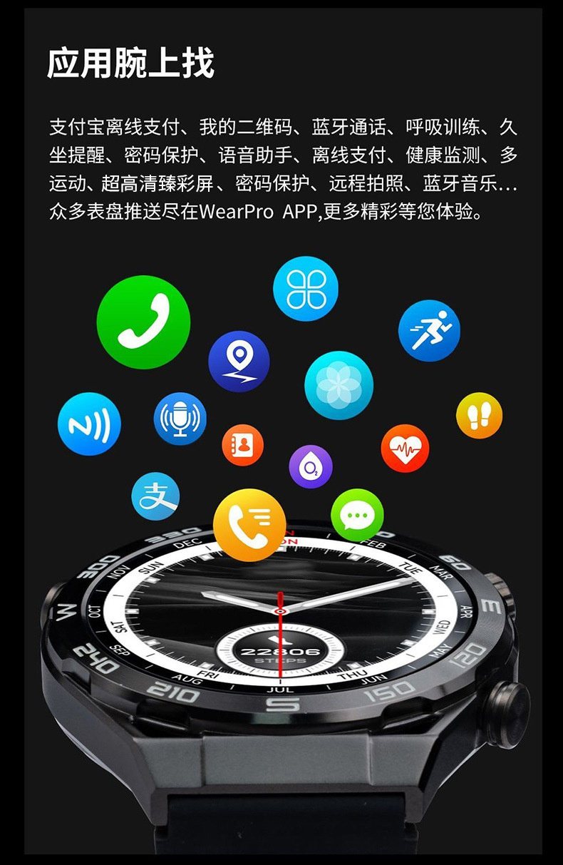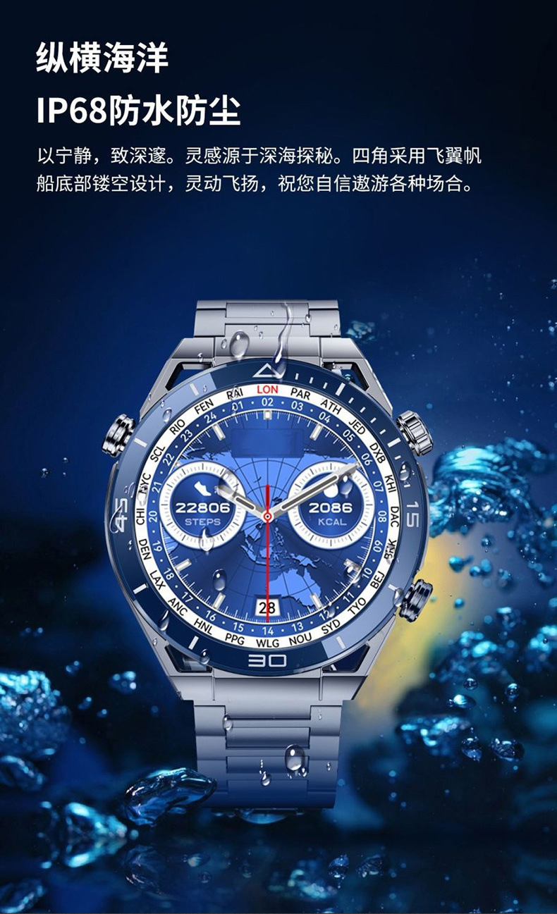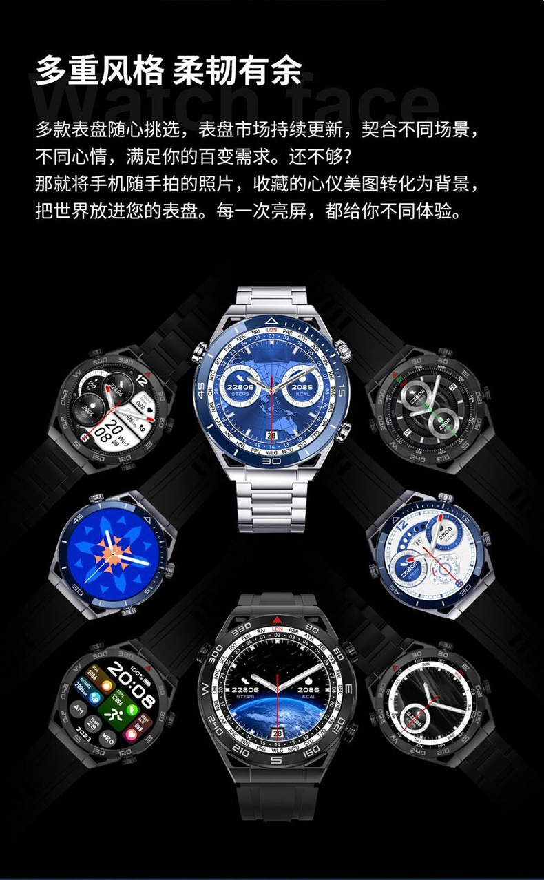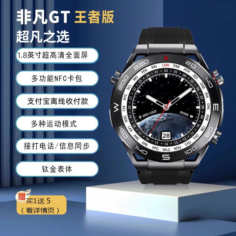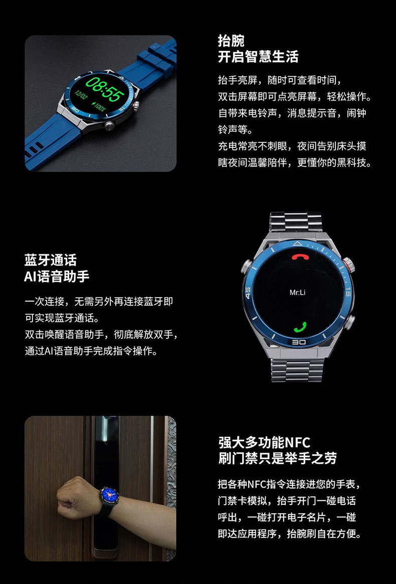 다기능 스마트 시계 2024 Huaqiangbei 새로운 블랙 기술 블루투스 전화 NFC 혈압 심박수 감지