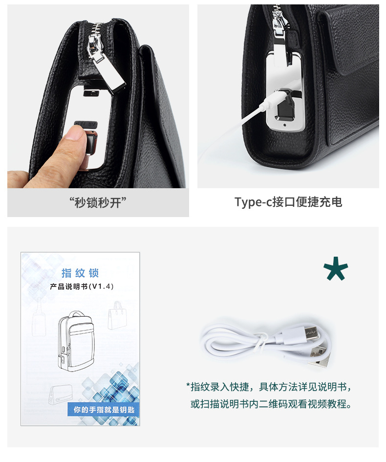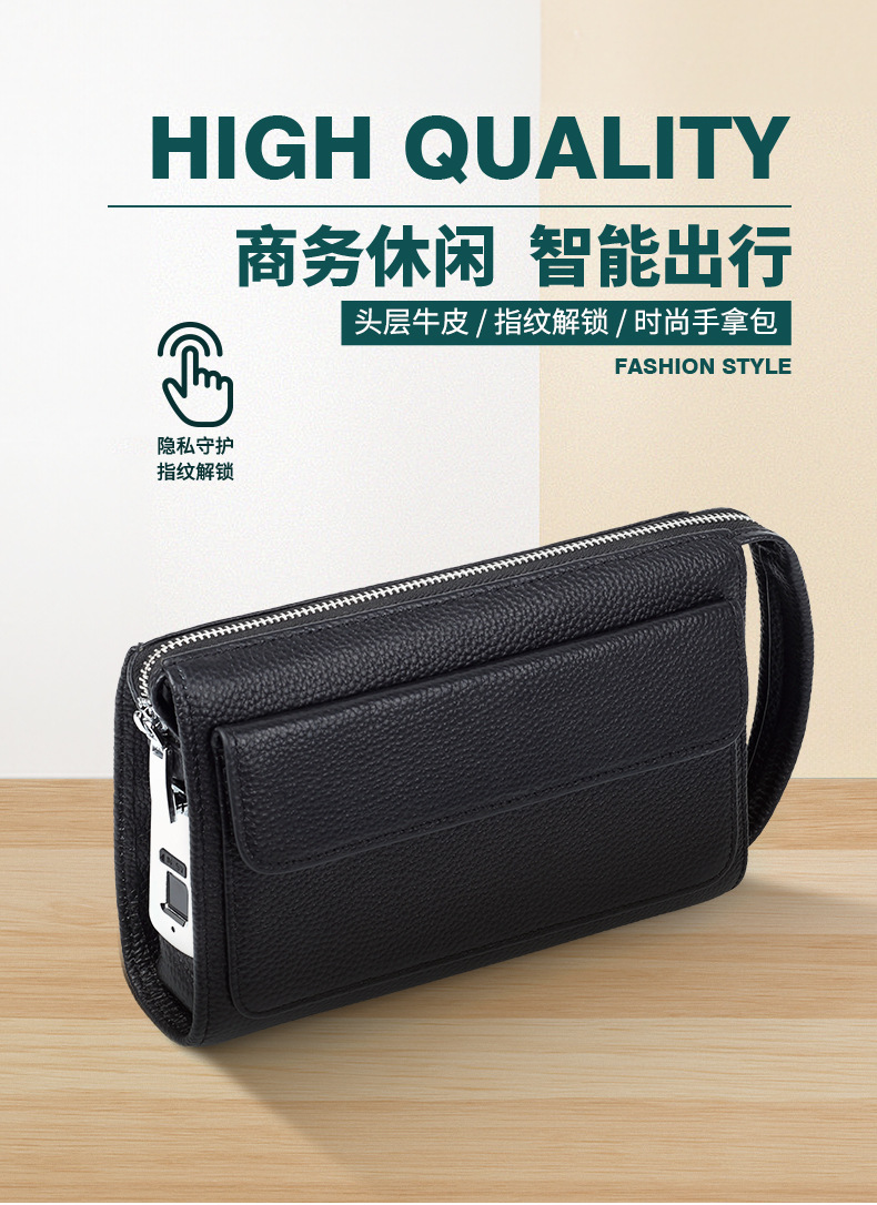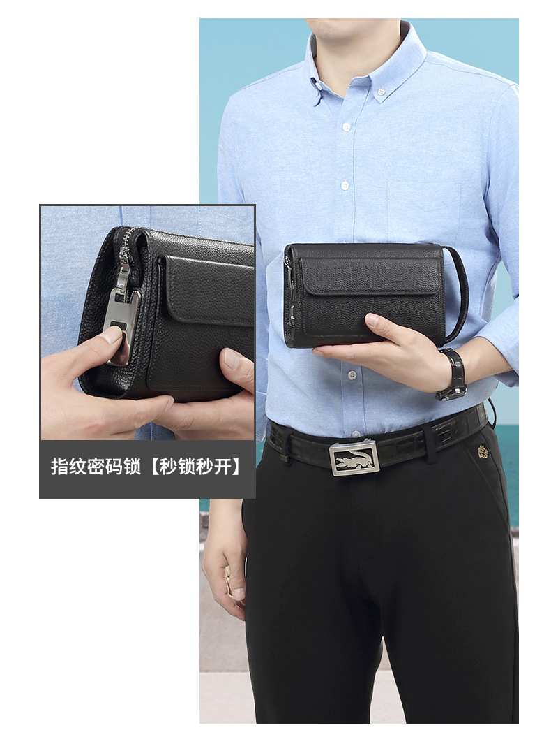 정품 가죽 지문 잠금 남성용 가방 유행 캐주얼 클러치 백 트렌디 비즈니스 휴대용 도난 방지 Cowhide 남성용 클러치 백스토어 가기