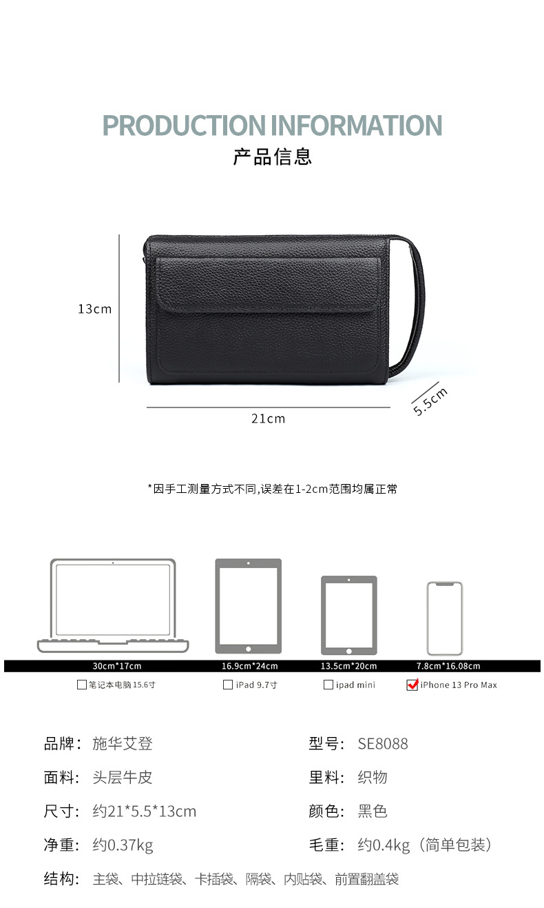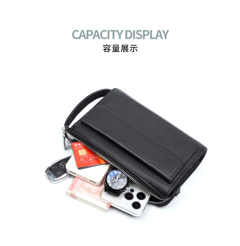 정품 가죽 지문 잠금 남성용 가방 유행 캐주얼 클러치 백 트렌디 비즈니스 휴대용 도난 방지 Cowhide 남성용 클러치 백