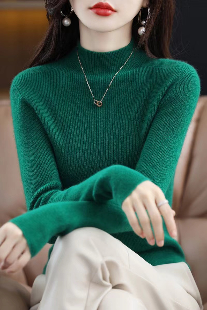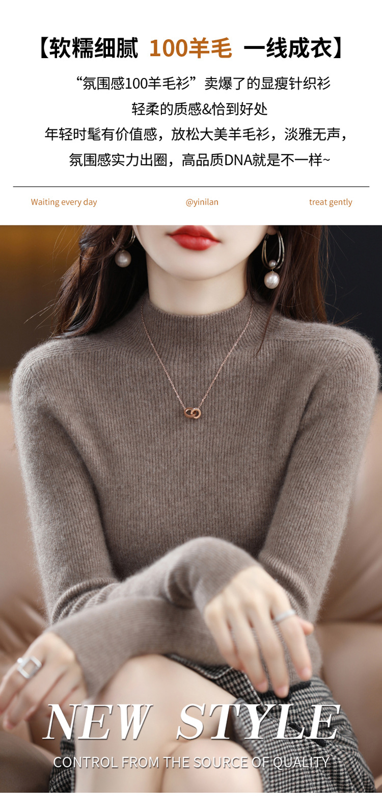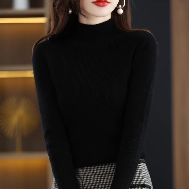 퓨어 울 스웨터 여성의 하프 하이 칼라 베이스 셔츠 여성용 솔리드 컬러 내부 슬림 스웨터 가을과 겨울 새로운 슬림 스웨터스토어 가기