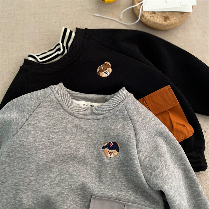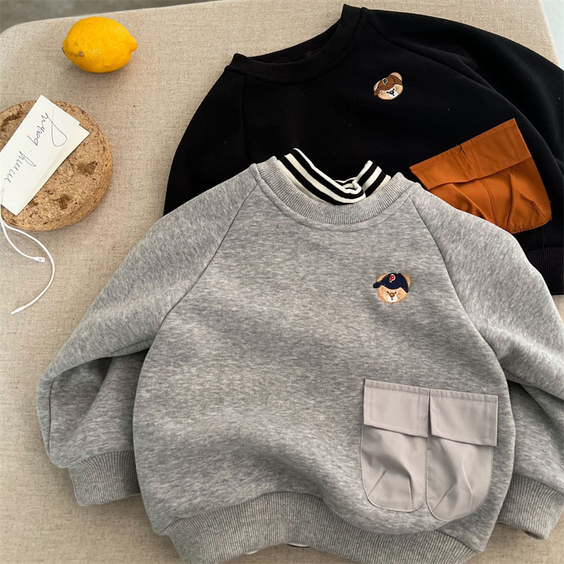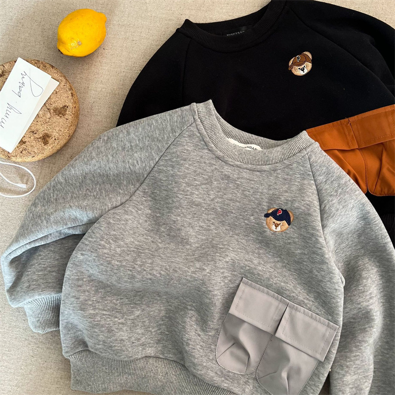 스팟상품! 아동용 스웨트 셔츠 2024 가을 겨울 신작 남성 및 여성 의류 자수 곰 스웨트 셔츠 아기 두꺼운 바닥 셔츠스토어 가기