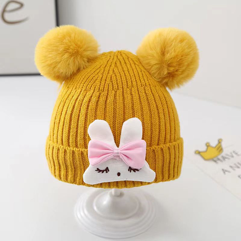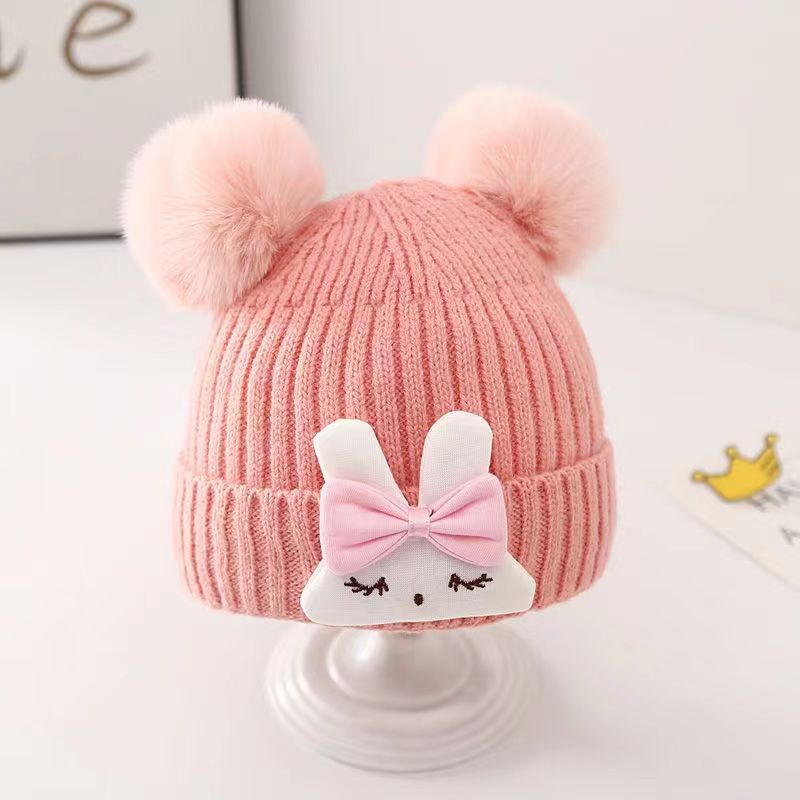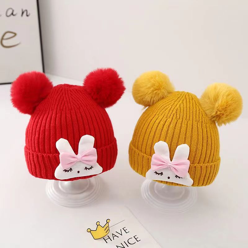 아기 모자 귀여운 만화 토끼 울 모자 겨울 따뜻한 귀 보호 모자 소년과 소녀를위한 니트 모자스토어 가기