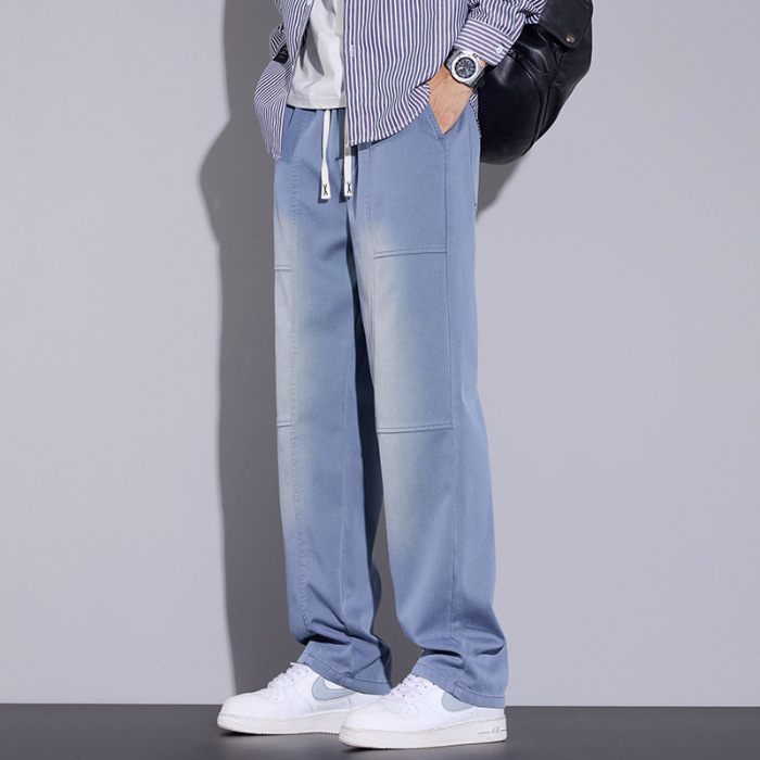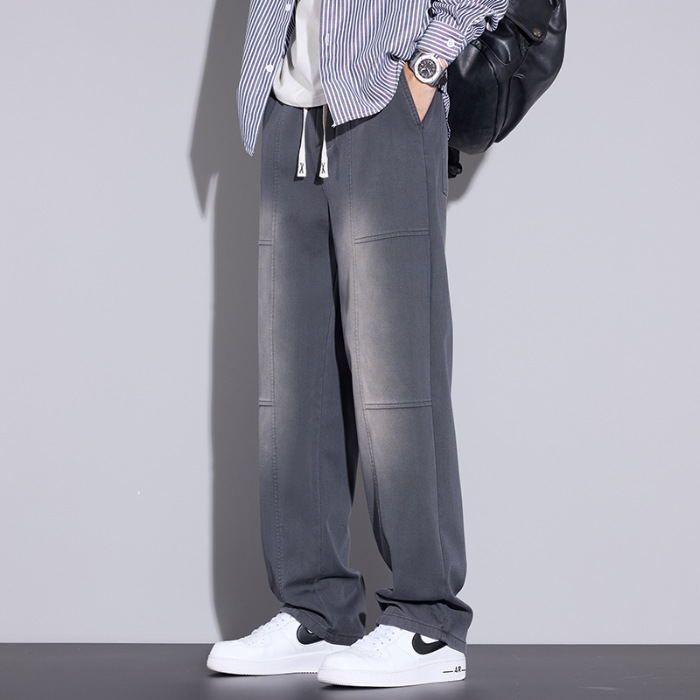 아메리칸 스타일 그라디언트 청바지 남자 2024 가을 새로운 패션 브랜드 느슨한 스트레이트 넓은 다리 세척 캐주얼 긴 바지