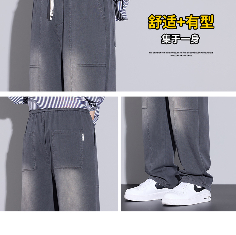 아메리칸 스타일 그라디언트 청바지 남자 2024 가을 새로운 패션 브랜드 느슨한 스트레이트 넓은 다리 세척 캐주얼 긴 바지스토어 가기