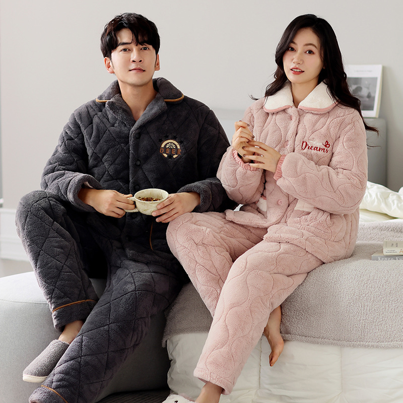커플 잠옷 여자의 겨울 3 층 면화-패딩 코트 산호 양털 기모 플란넬 가을과 겨울 남자 홈 옷스토어 가기