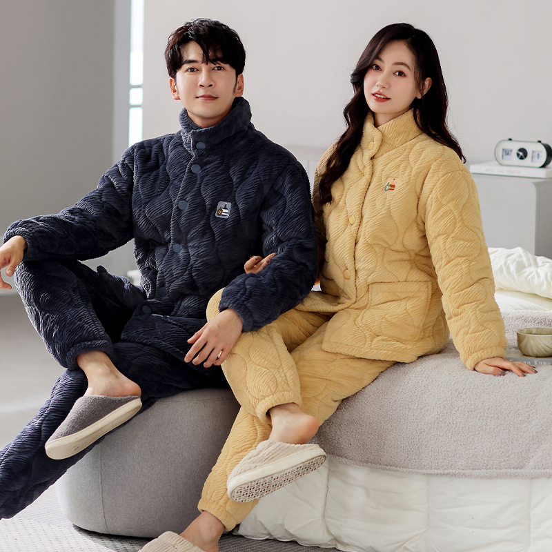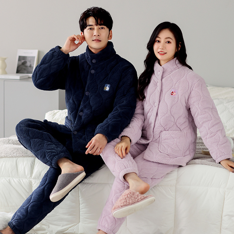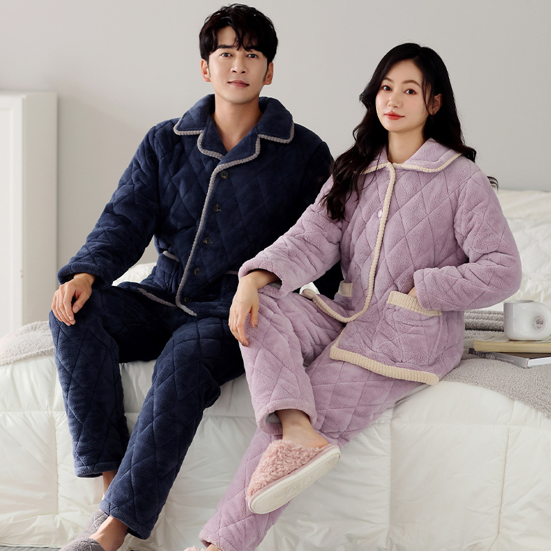 커플 잠옷 여자의 겨울 3 층 면화-패딩 코트 산호 양털 기모 플란넬 가을과 겨울 남자 홈 옷