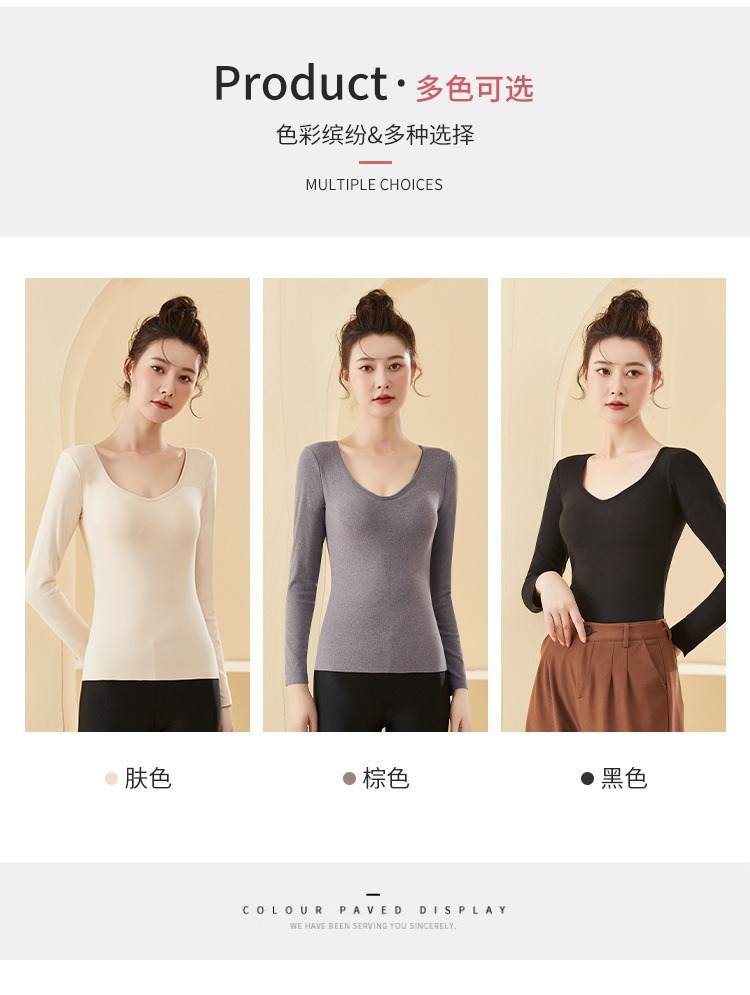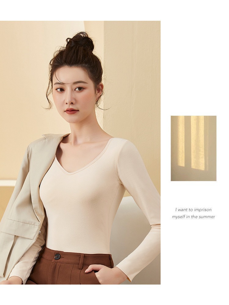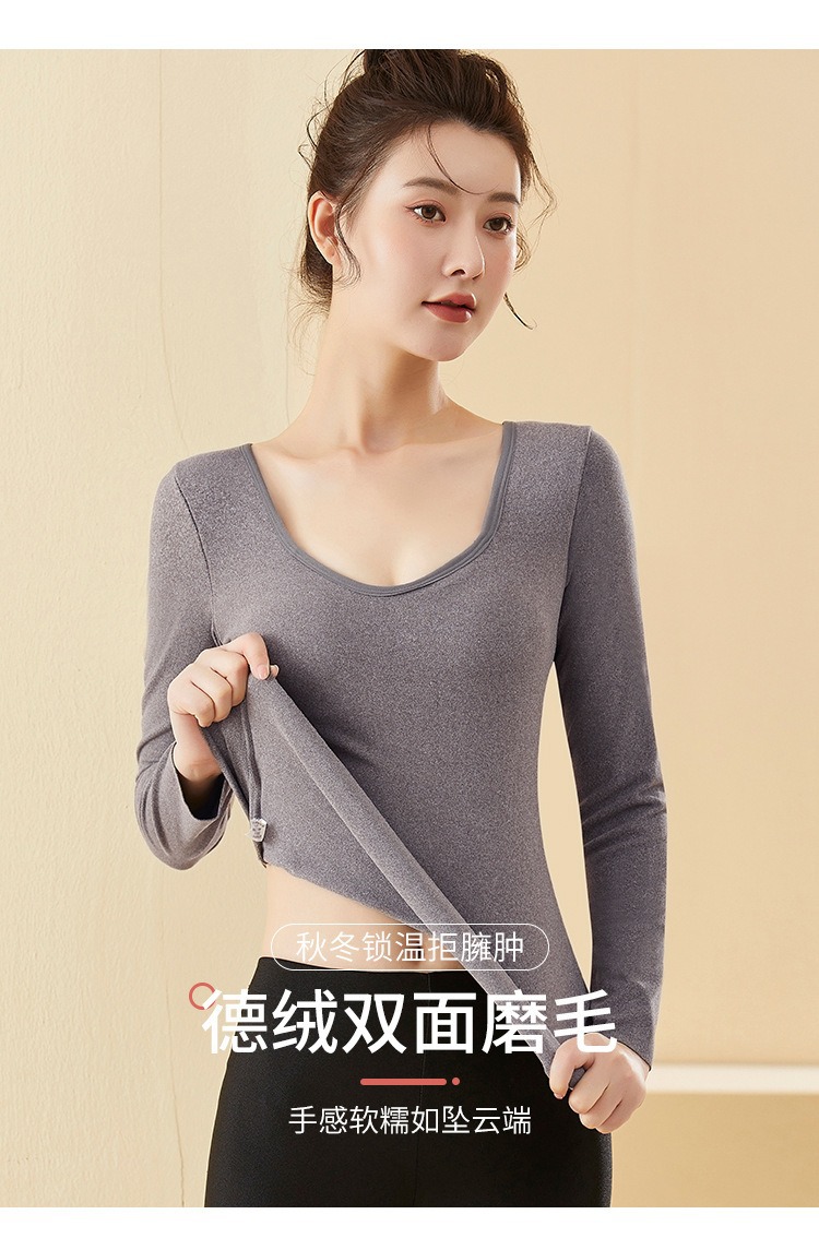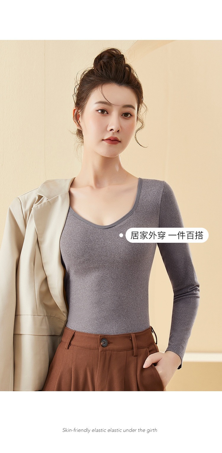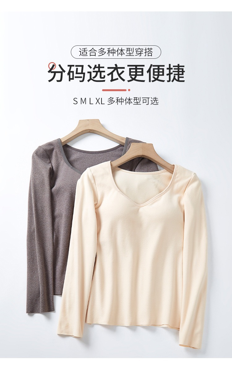 De Velvet 난방 열 속옷 여성 기모 가슴 패드 원피스베이스 셔츠 최고 가을과 겨울 두꺼운 원활한 가을 옷