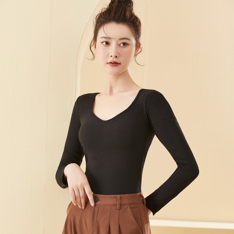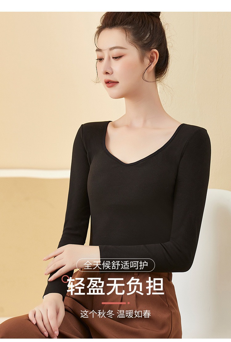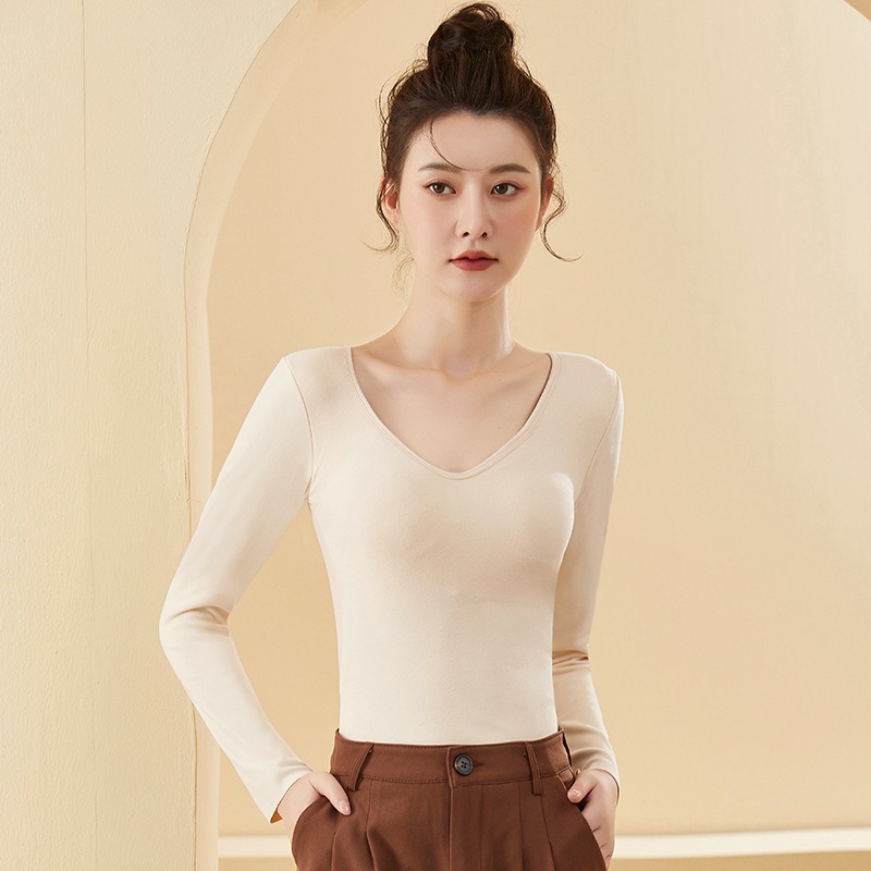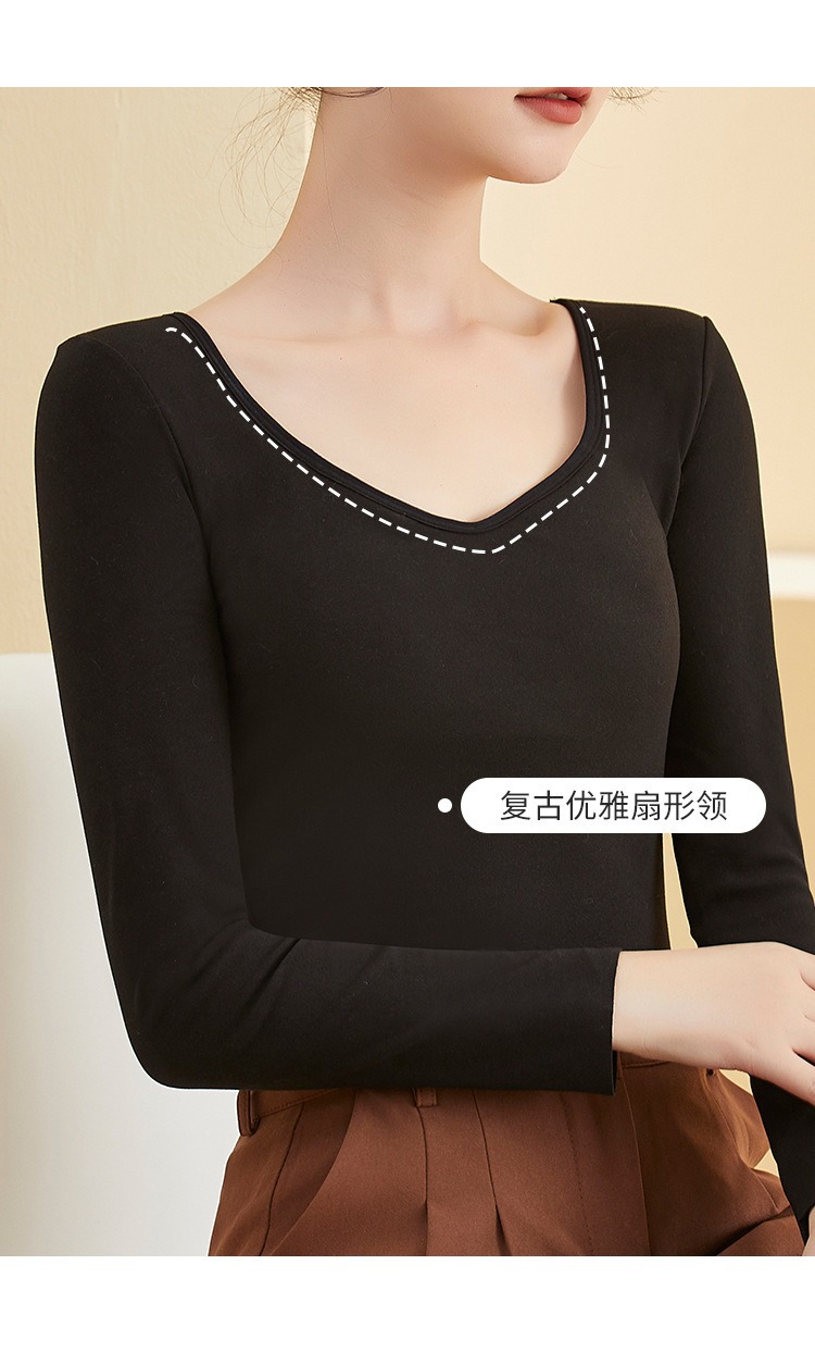De Velvet 난방 열 속옷 여성 기모 가슴 패드 원피스베이스 셔츠 최고 가을과 겨울 두꺼운 원활한 가을 옷스토어 가기