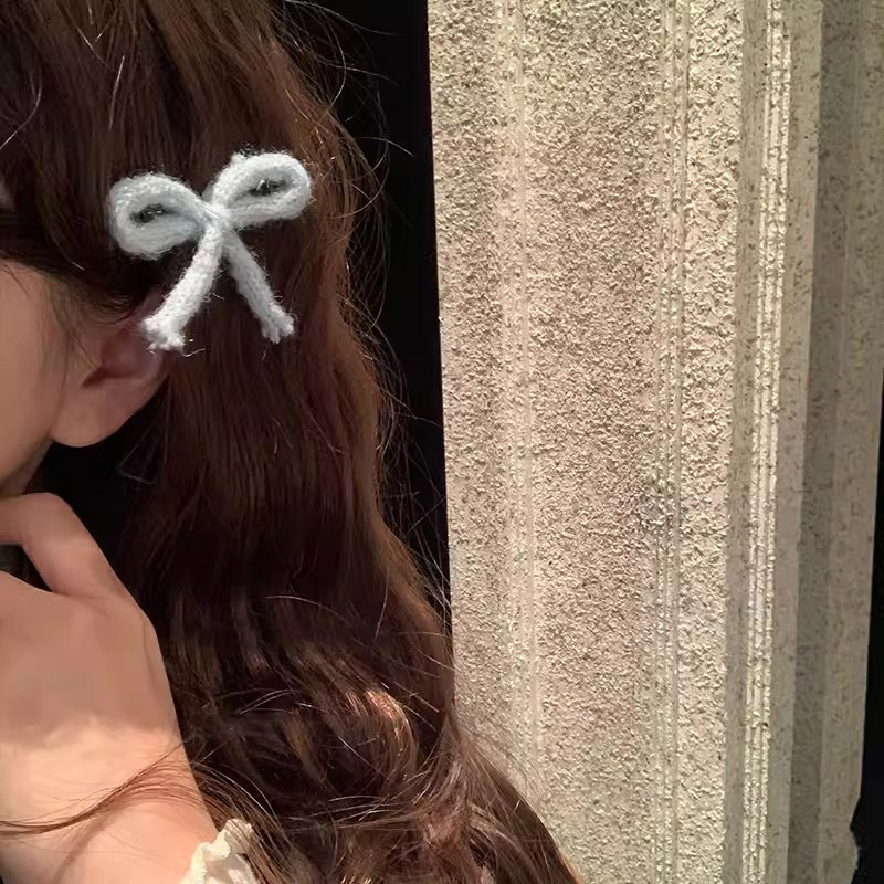 한국 캔디 컬러 활 울 헤어 클립 여성의 귀여운 솔리드 컬러 니트 뱅 클립 달콤한 컬러 소녀 헤어 액세서리