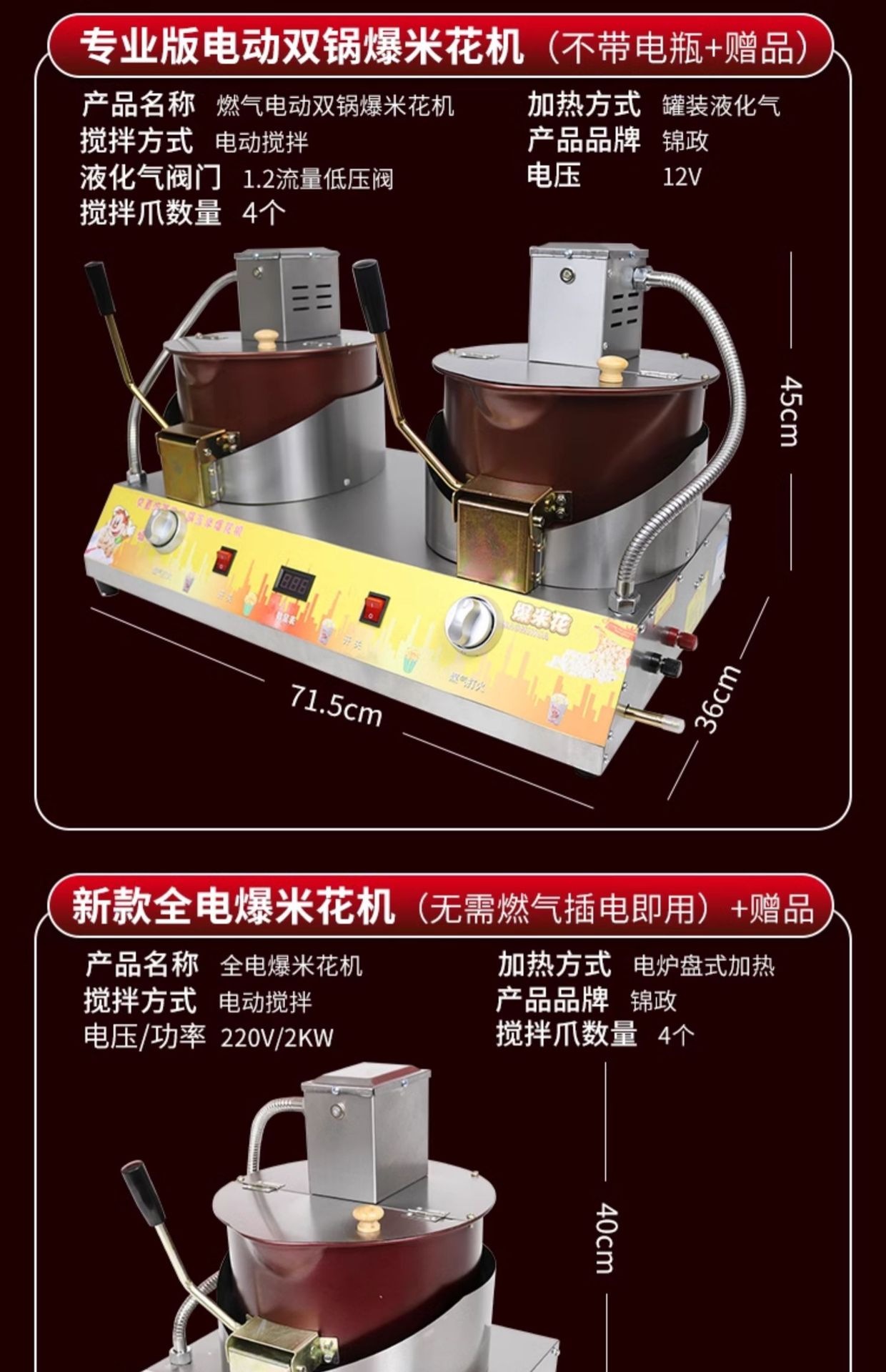 • 업그레이드된 이중 냄비 팝콘 기계 + 배터리 + 선물