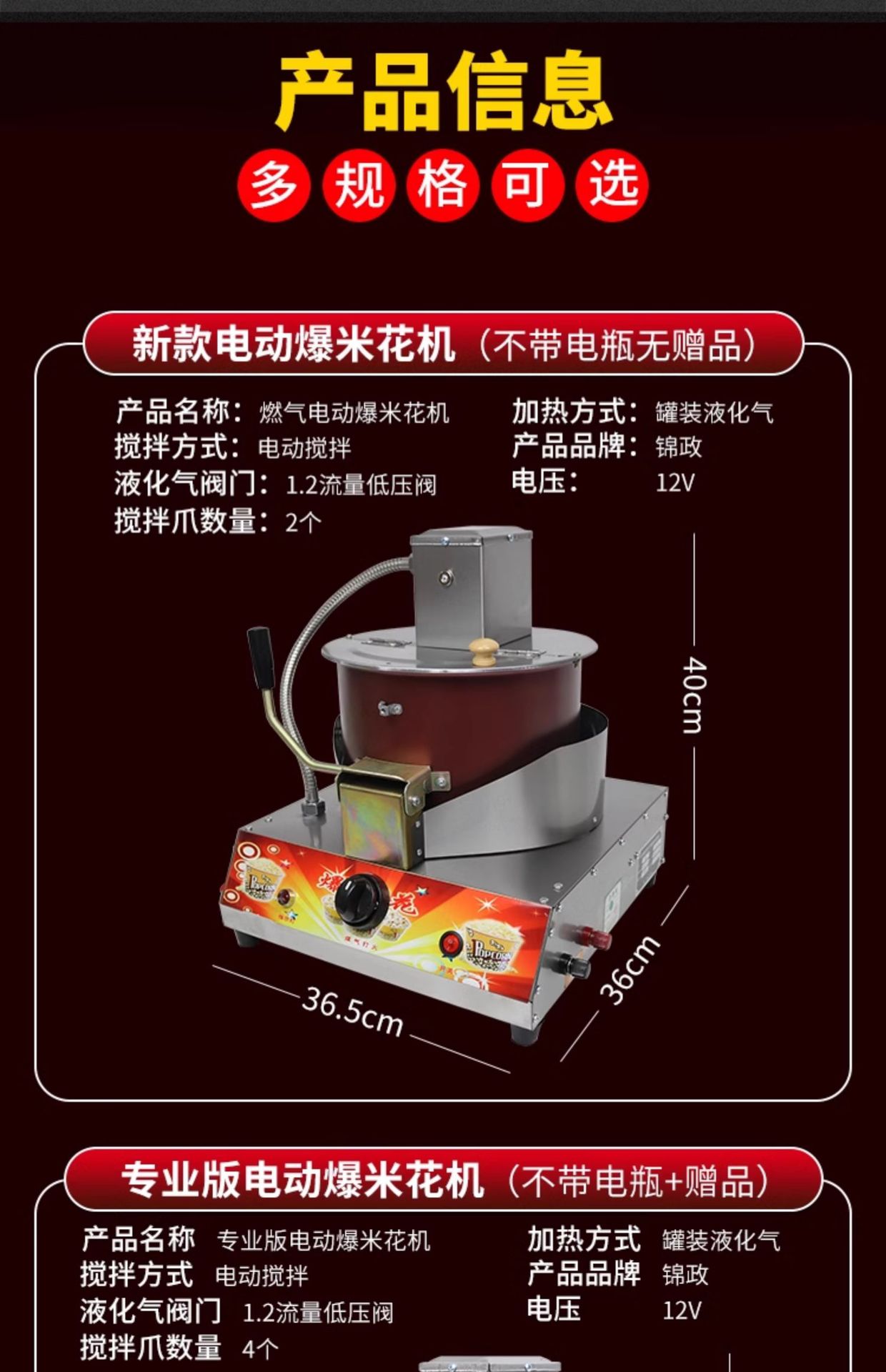 • 업그레이드된 전기 팝콘 기계 + 배터리 + 선물