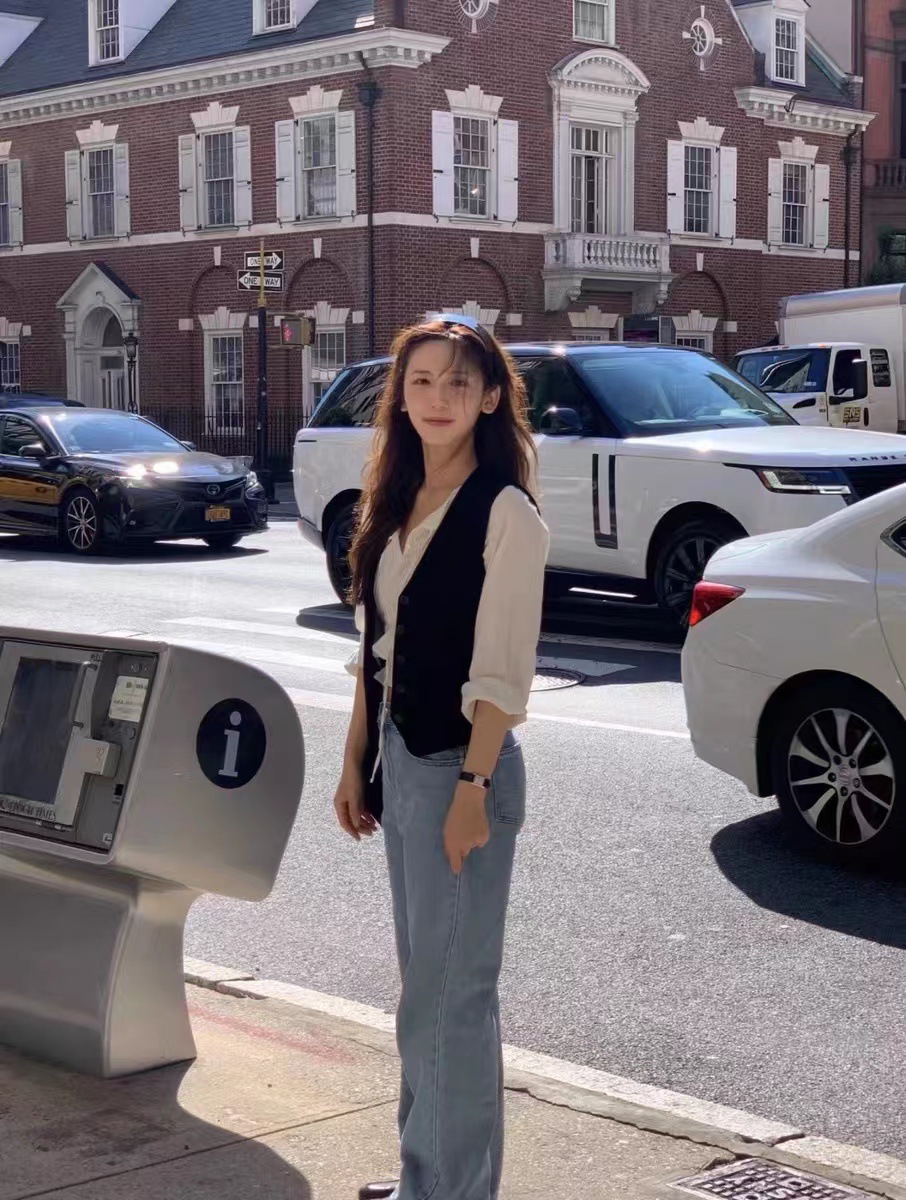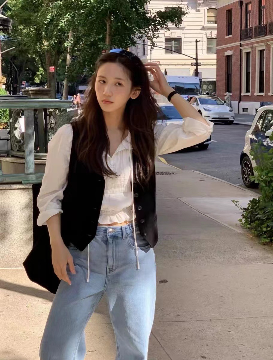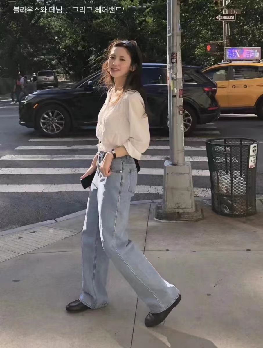 재고 있음~26 봄 신상 한국 니치 패션 브랜드 바나이 루즈핏 하이웨이스트 슬림 스트레이트 데님 팬츠 여성용스토어 가기
