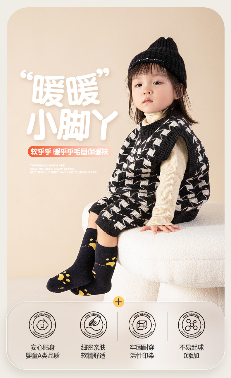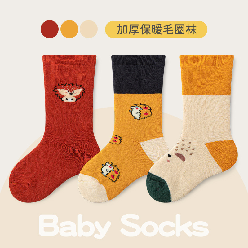 아기 양말 가을과 겨울 새로운 클래스 코튼 뼈없는 양말 테리 두꺼운 따뜻한 만화 높은 탄성 발 튜브 양말스토어 가기