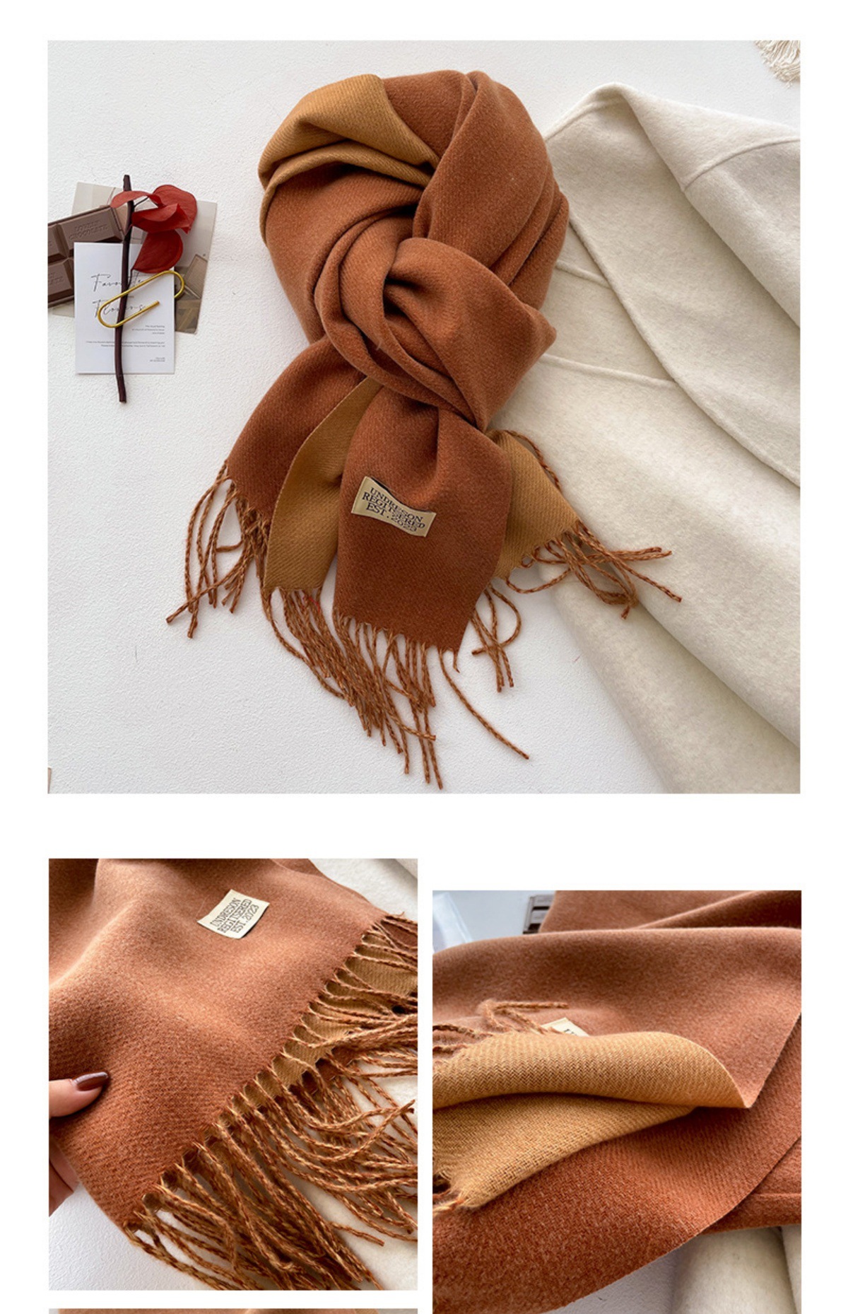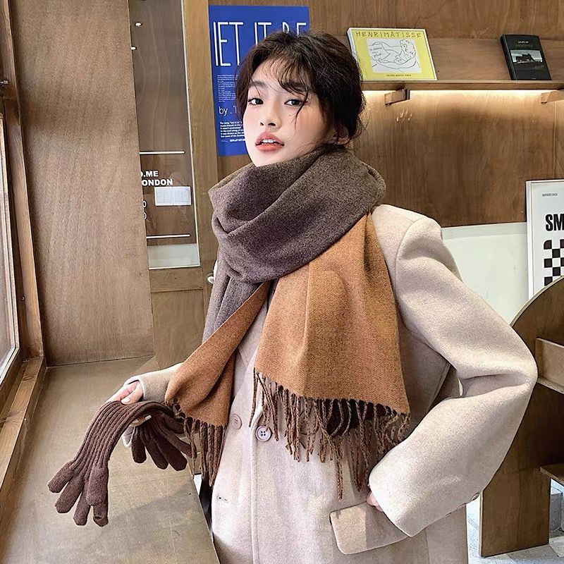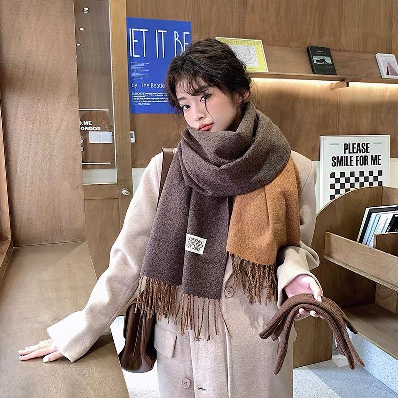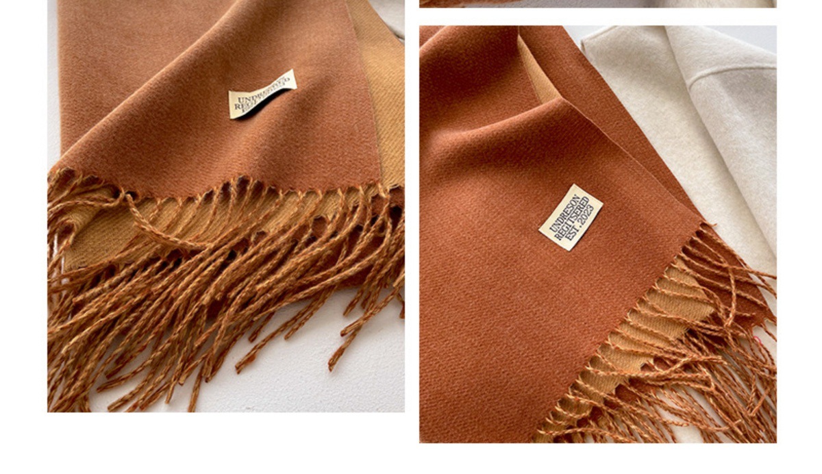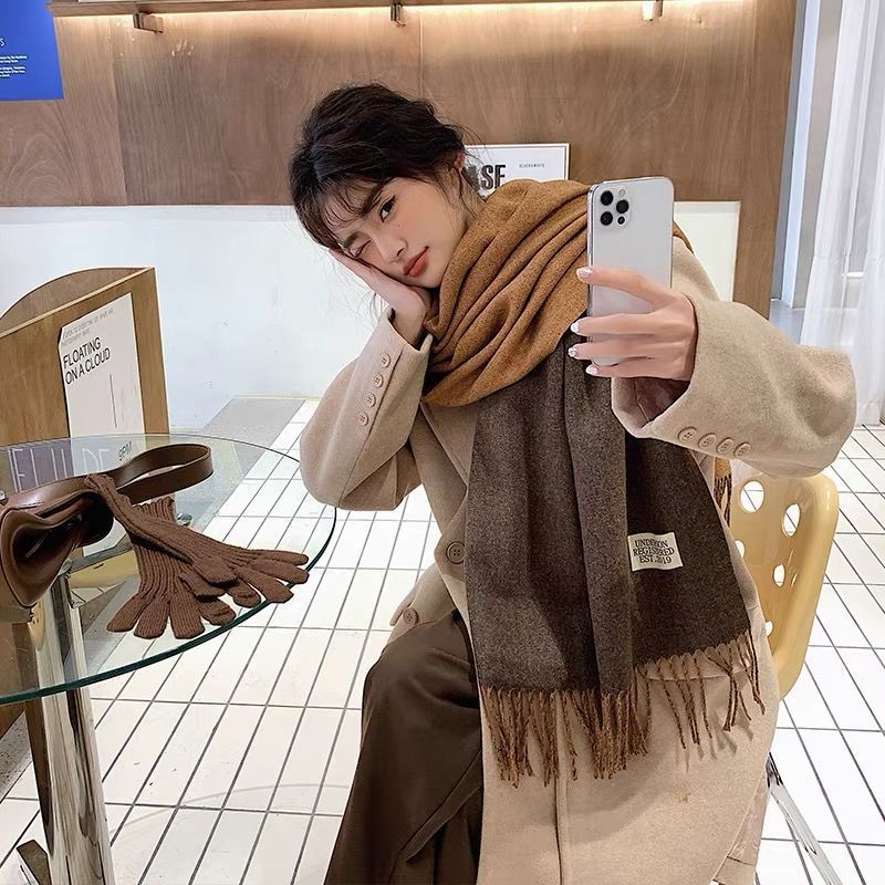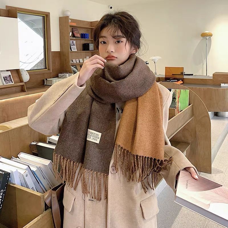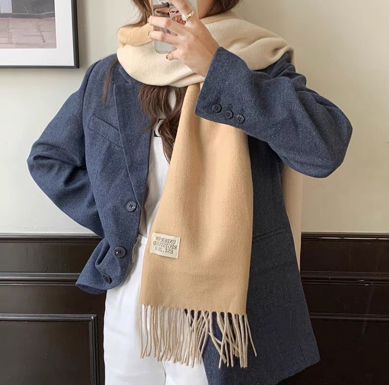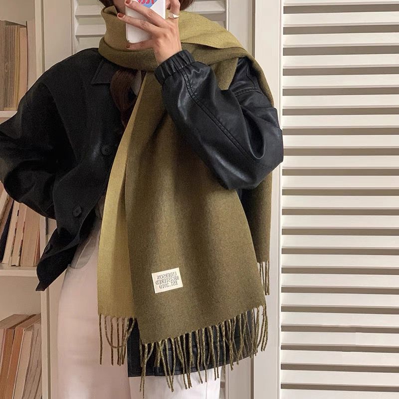 겨울철 여성용 양면 2색 스카프, 다용도, 따뜻하고 두꺼운 어깨, 이중 목적 모조 캐시미어, 한국식 태슬, 단색, 고급감