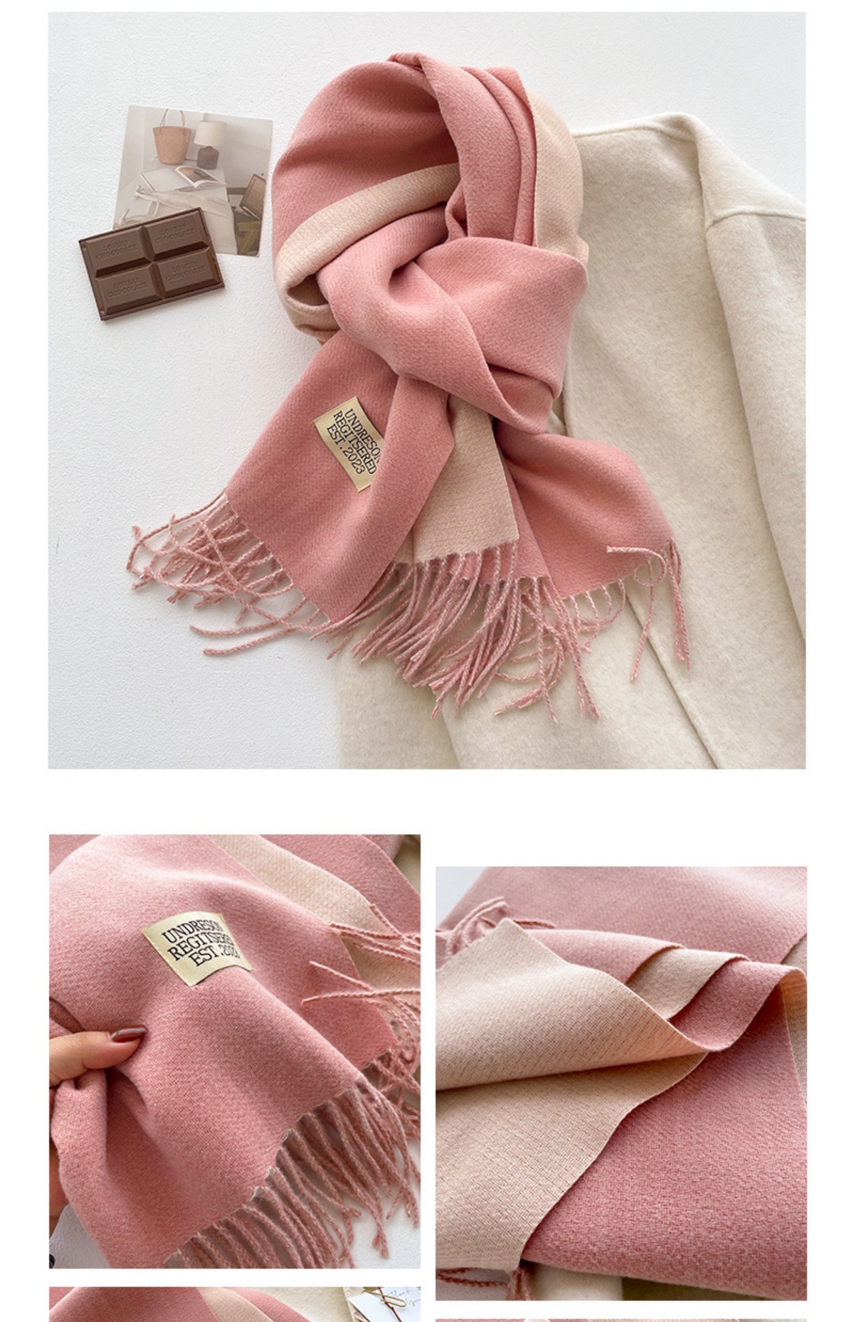 겨울철 여성용 양면 2색 스카프, 다용도, 따뜻하고 두꺼운 어깨, 이중 목적 모조 캐시미어, 한국식 태슬, 단색, 고급감스토어 가기