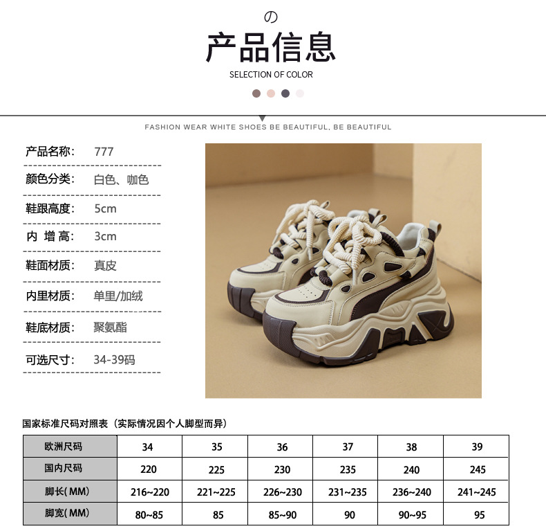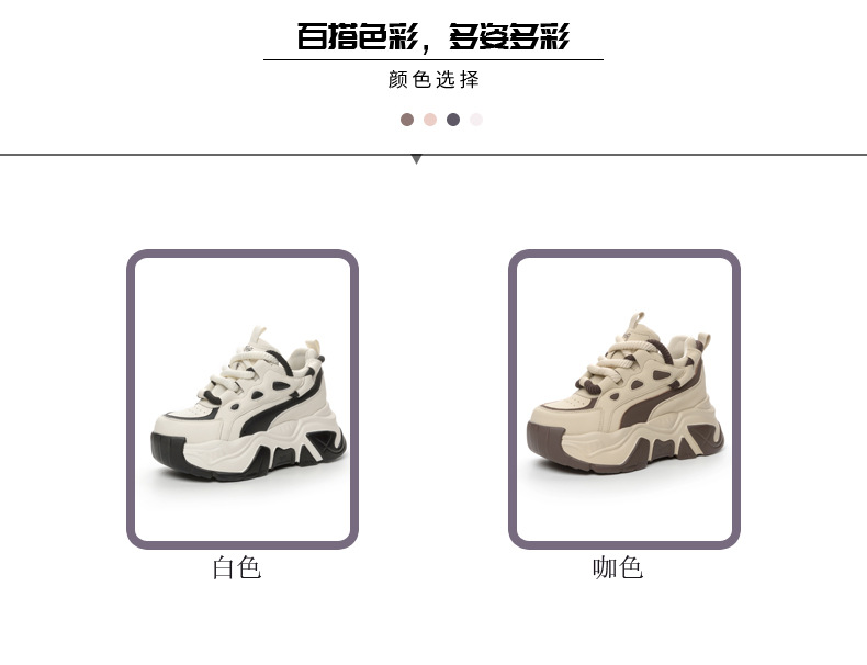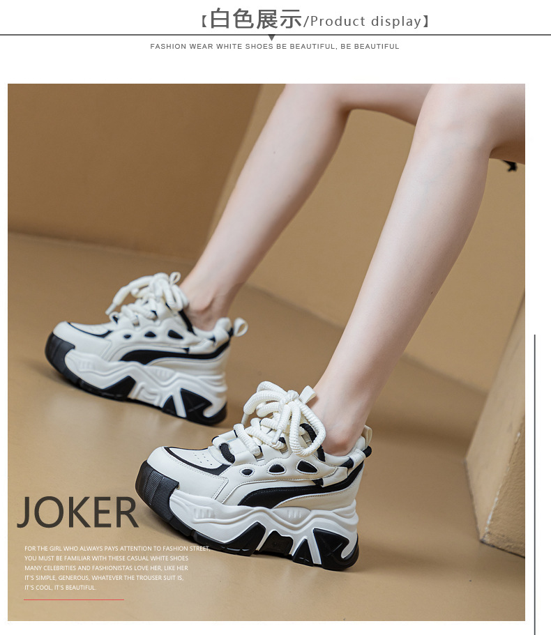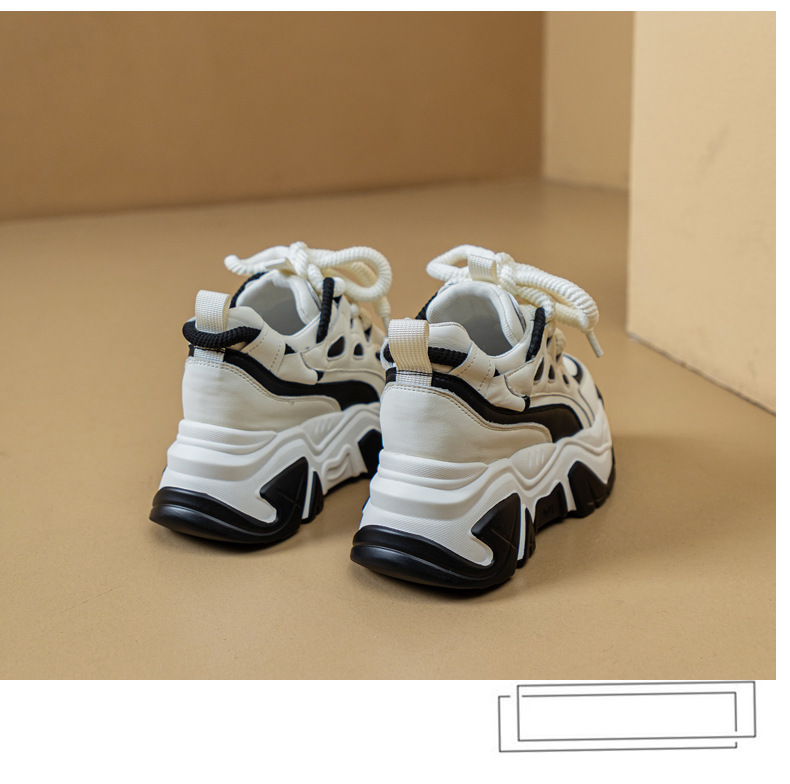 가을 2024 새로운 인테리어 높이 증가 가죽 색상 일치 아빠 신발 두꺼운 단독 쐐기 캐주얼 운동화 학생 신발 여성 신발