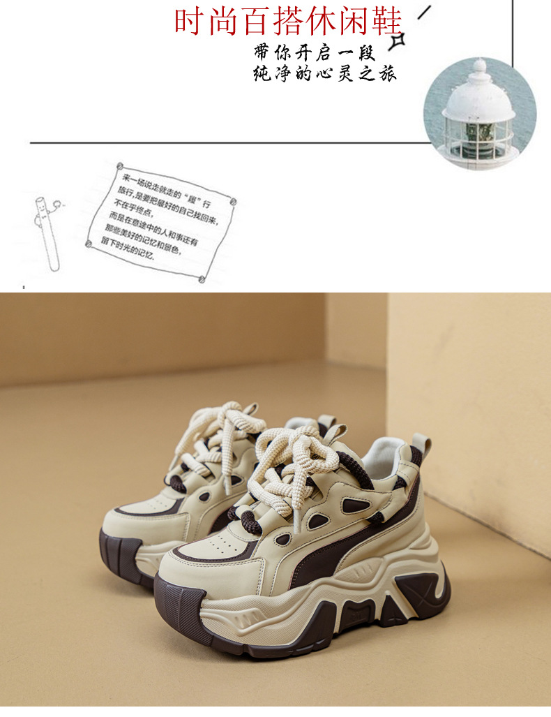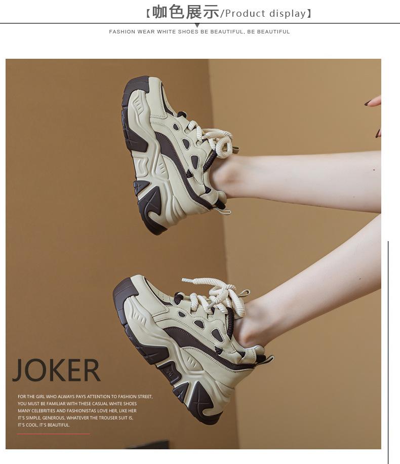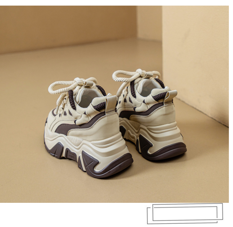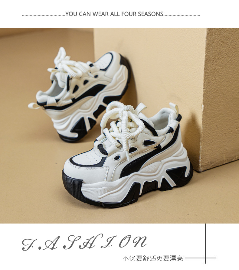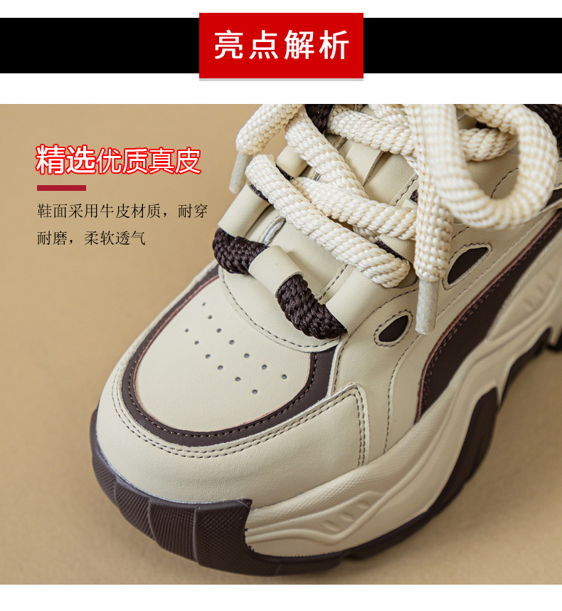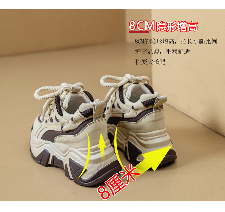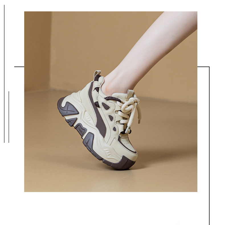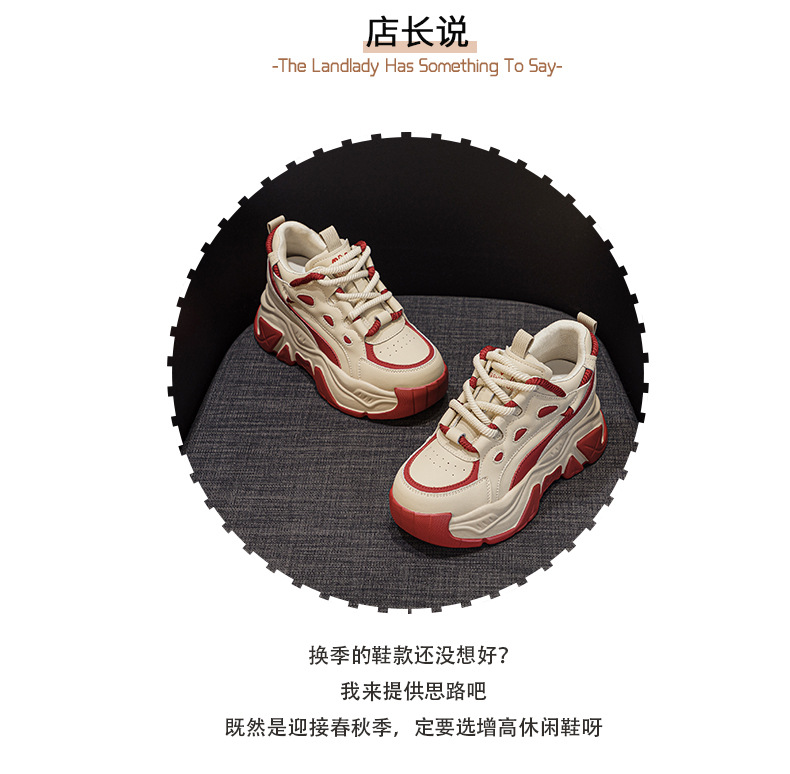 가을 2024 새로운 인테리어 높이 증가 가죽 색상 일치 아빠 신발 두꺼운 단독 쐐기 캐주얼 운동화 학생 신발 여성 신발스토어 가기