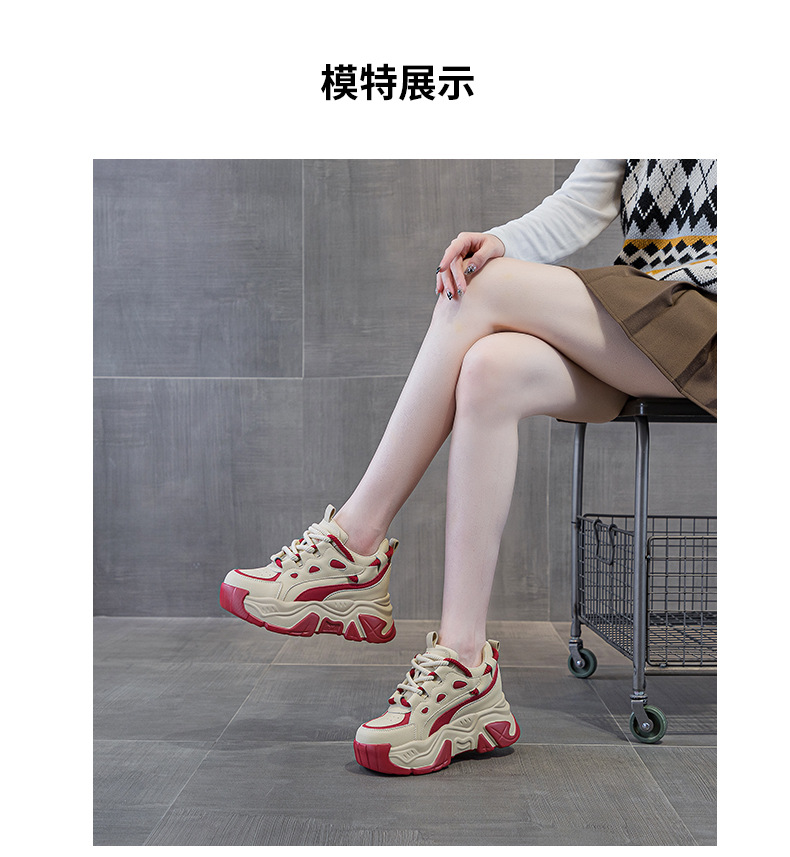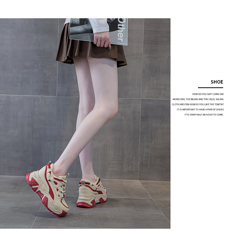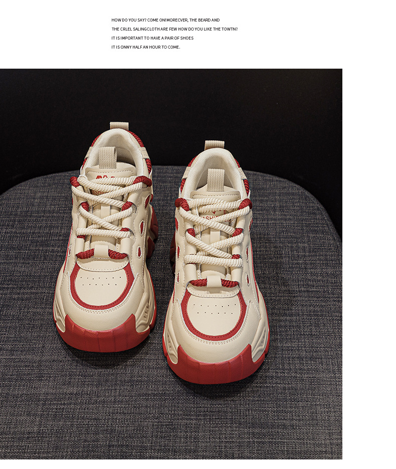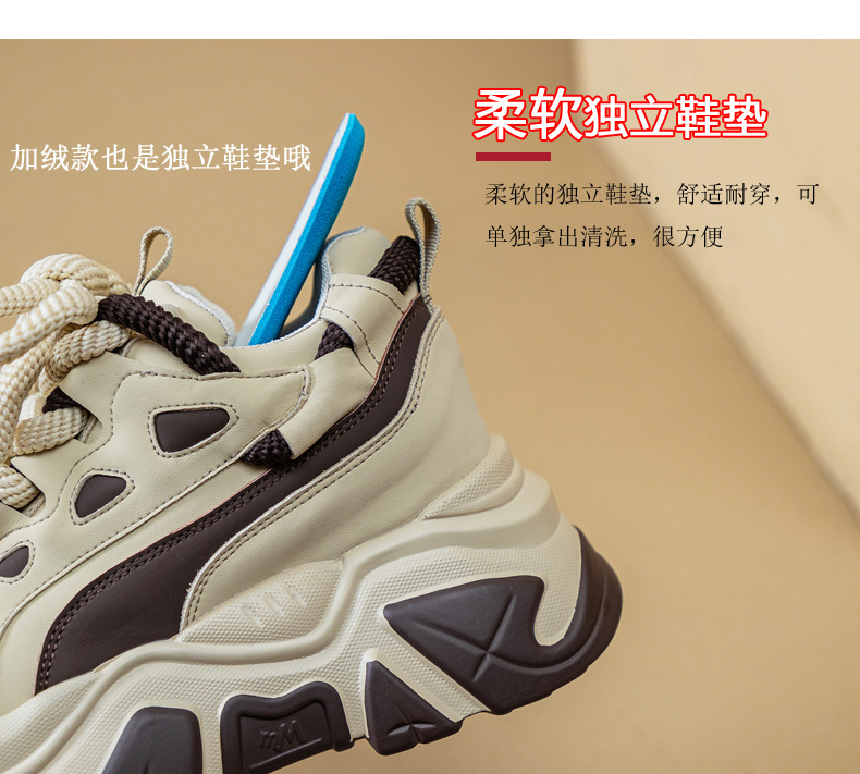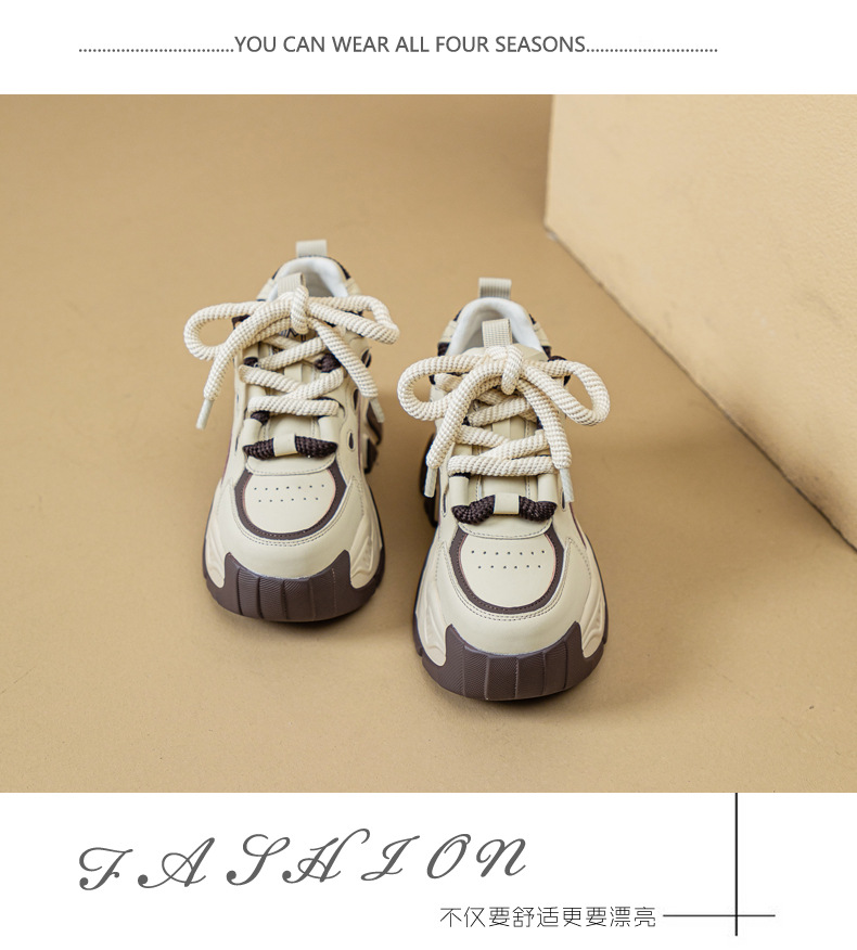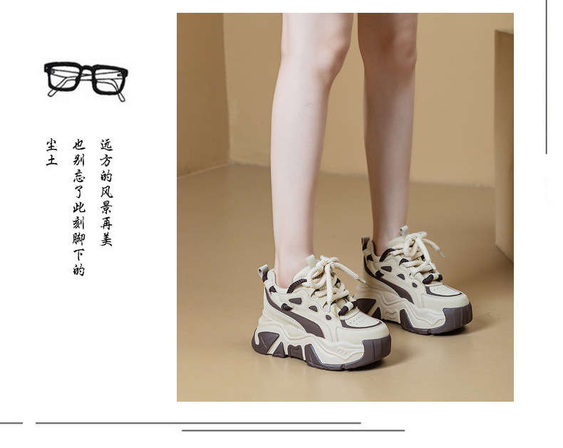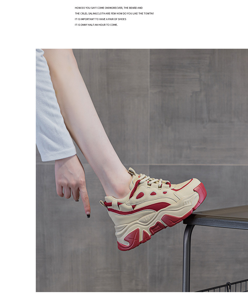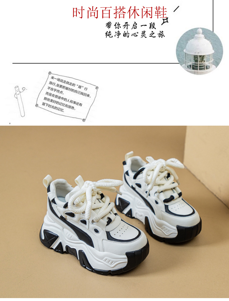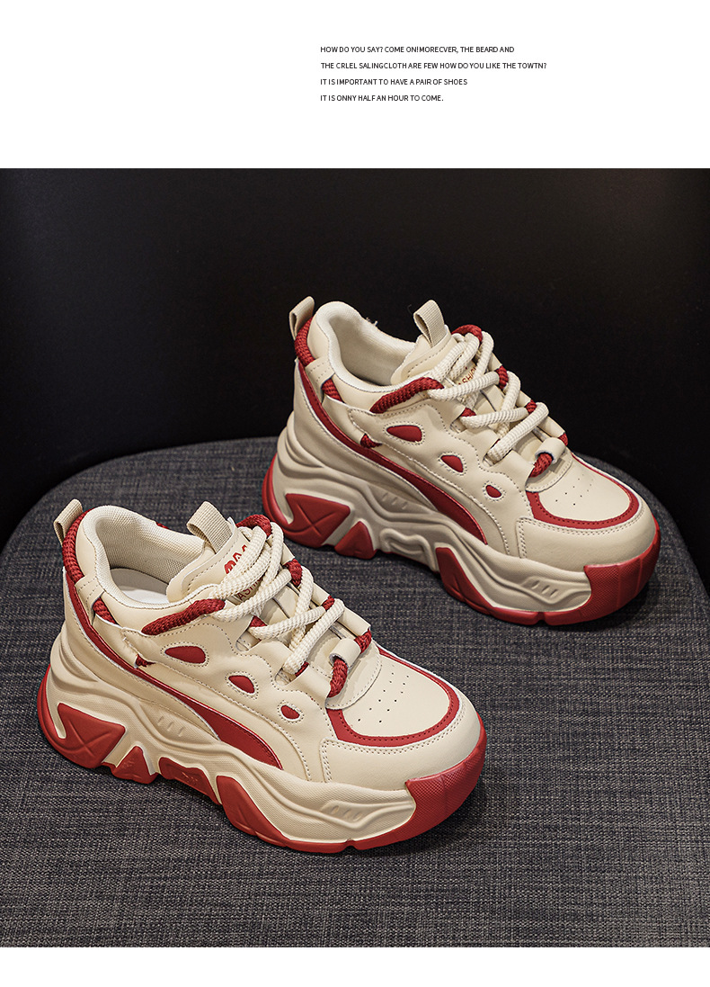 가을 2024 새로운 인테리어 높이 증가 가죽 색상 일치 아빠 신발 두꺼운 단독 쐐기 캐주얼 운동화 학생 신발 여성 신발스토어 가기