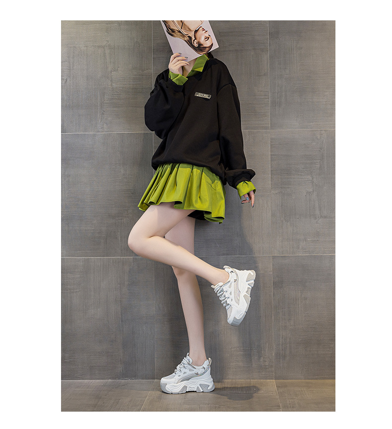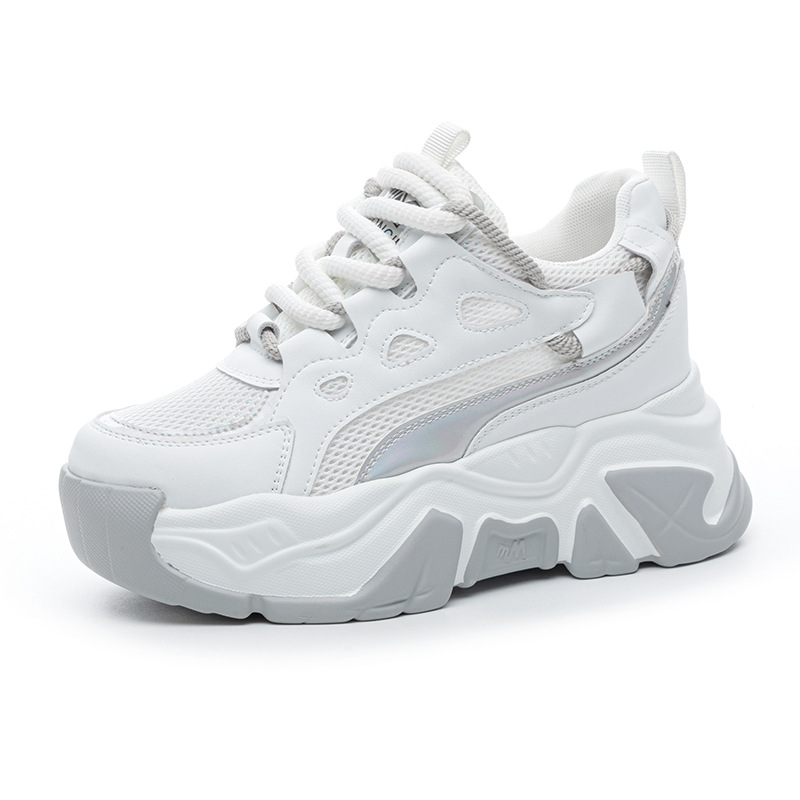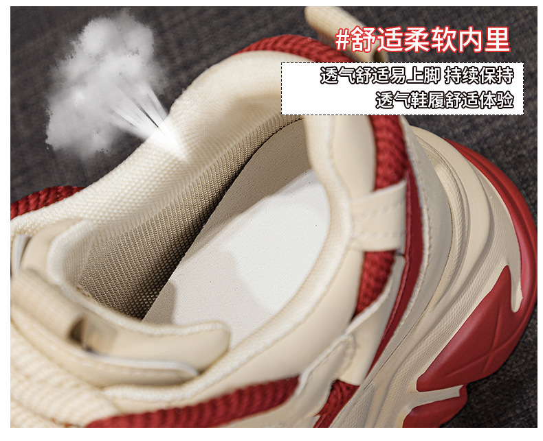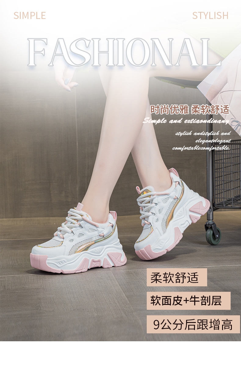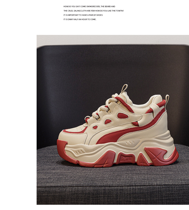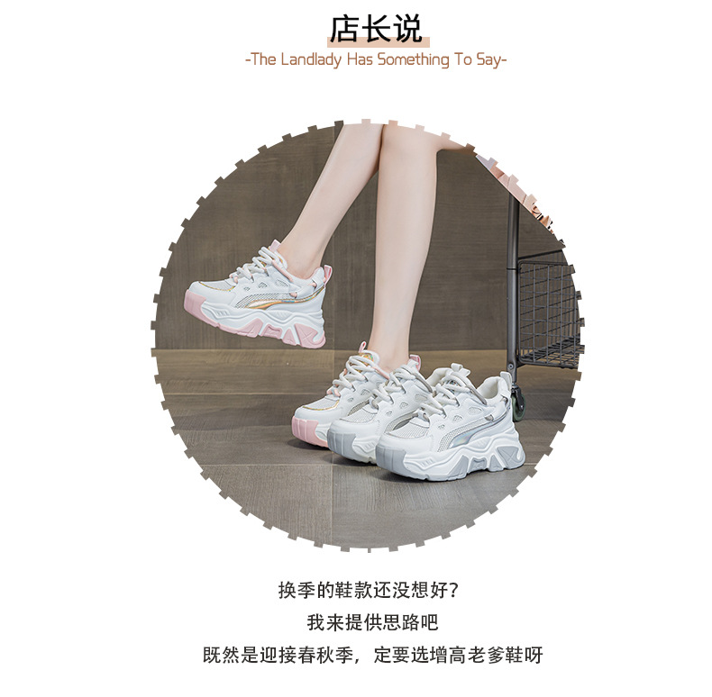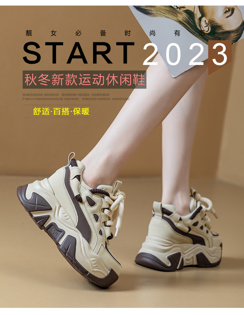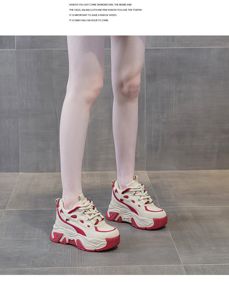 가을 2024 새로운 인테리어 높이 증가 가죽 색상 일치 아빠 신발 두꺼운 단독 쐐기 캐주얼 운동화 학생 신발 여성 신발스토어 가기