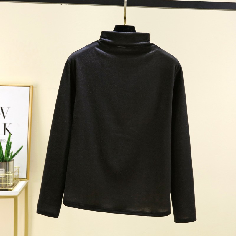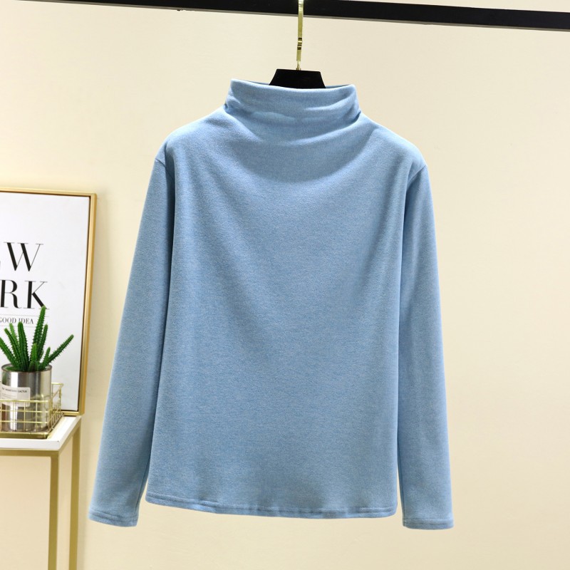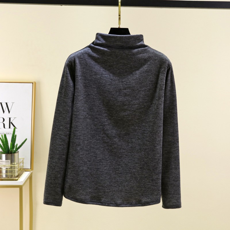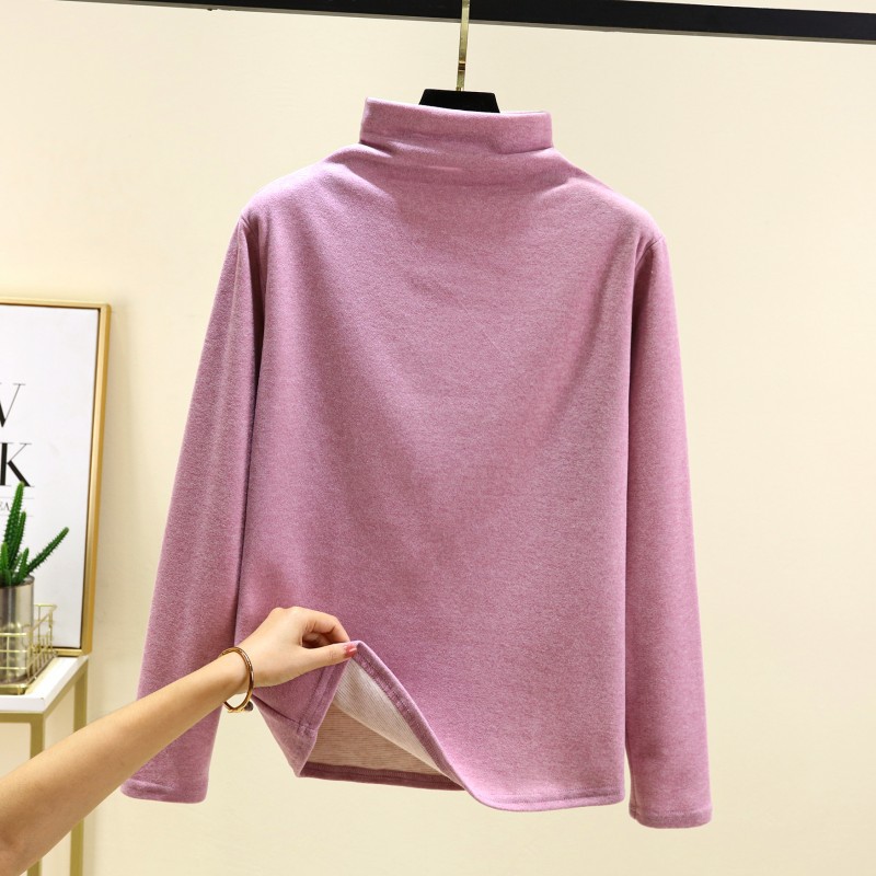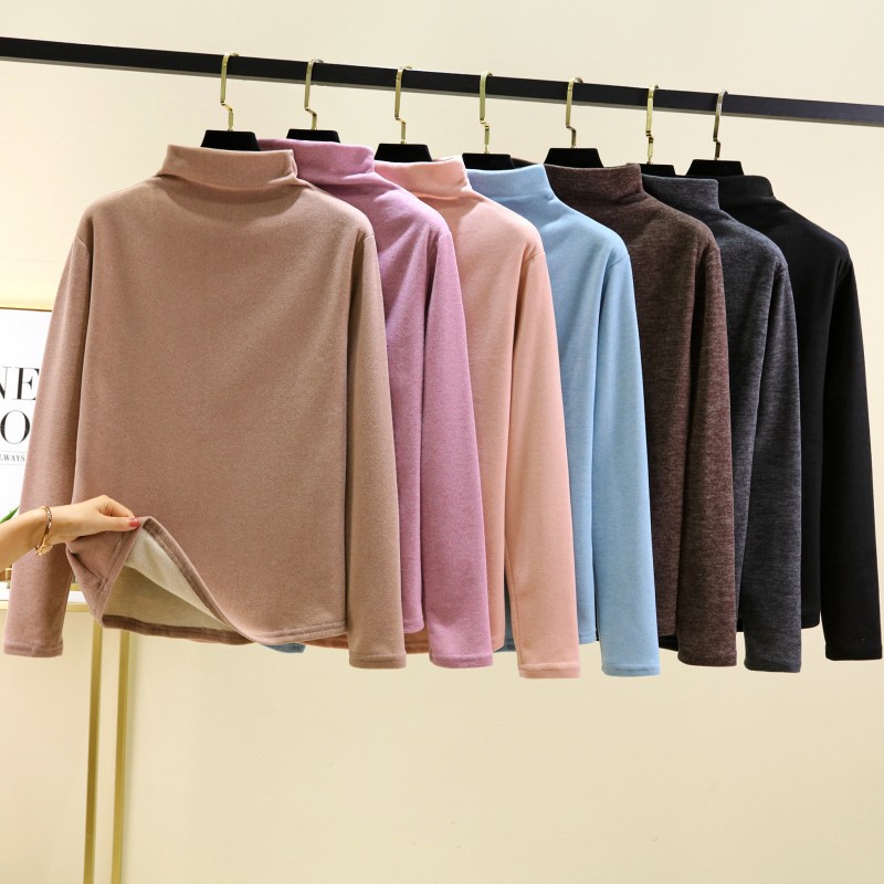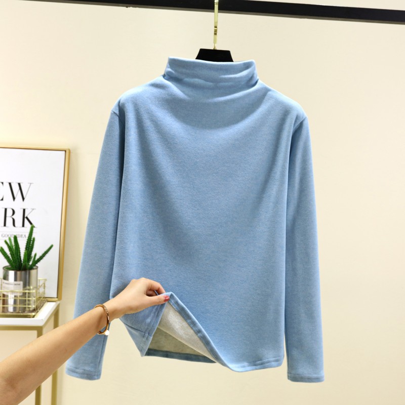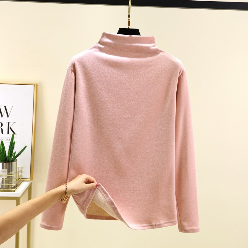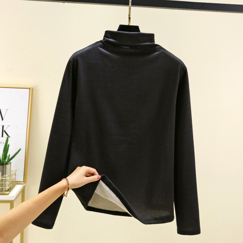 실크 캐시미어 모크 칼라베이스 셔츠 여성용 가을과 겨울 기모 긴 소매 따뜻한 옷 서양식 슬리밍 내부 탑스토어 가기