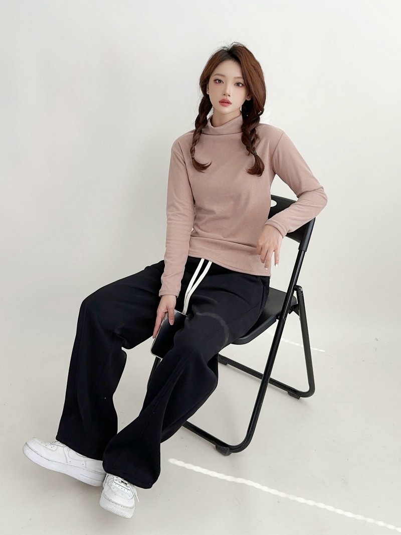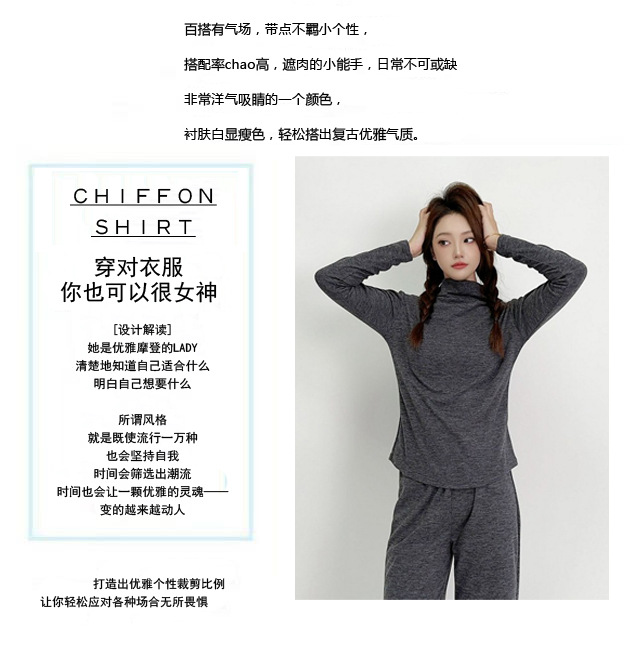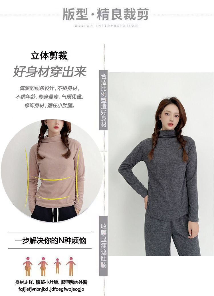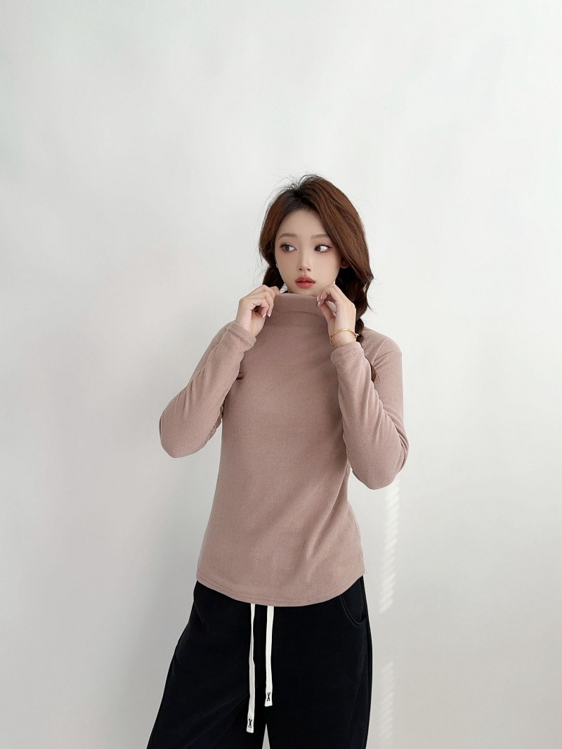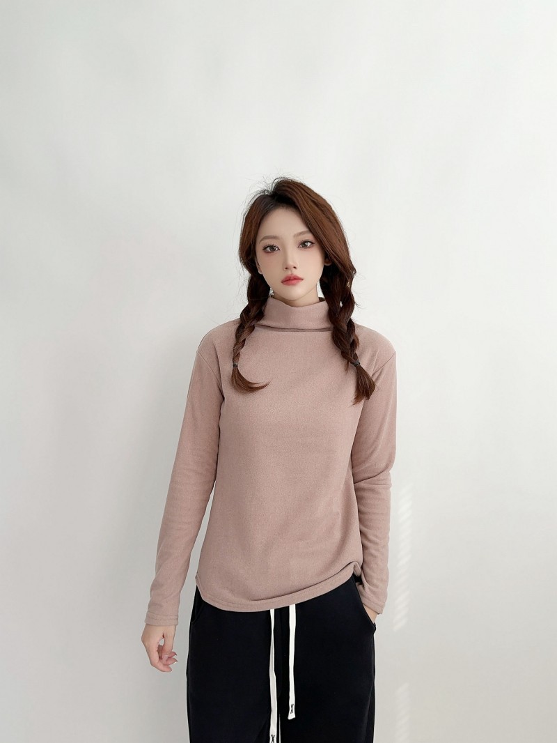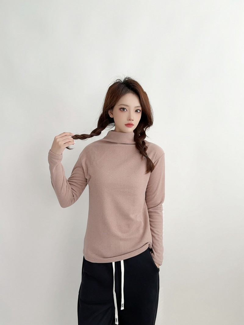 실크 캐시미어 모크 칼라베이스 셔츠 여성용 가을과 겨울 기모 긴 소매 따뜻한 옷 서양식 슬리밍 내부 탑스토어 가기