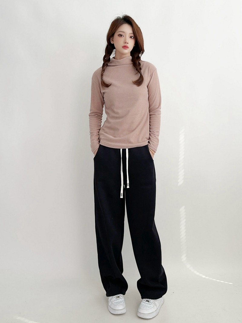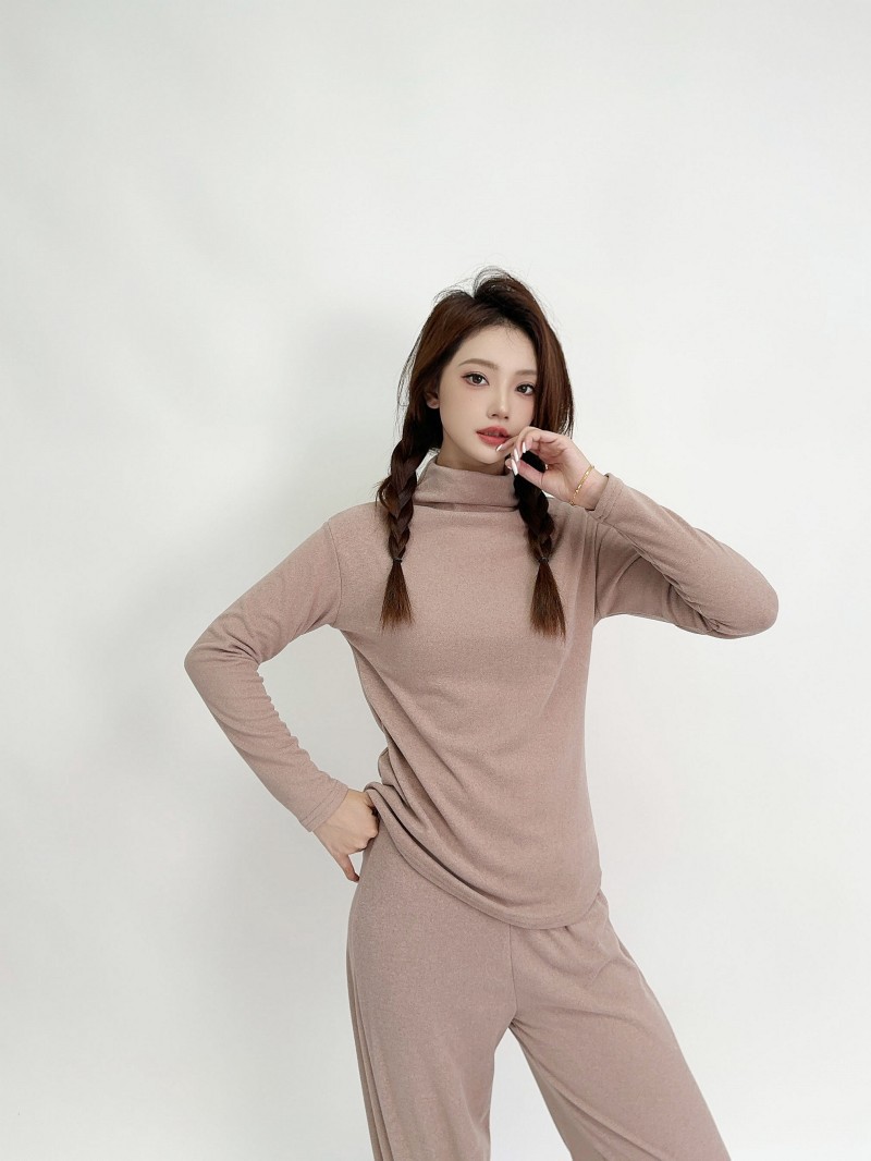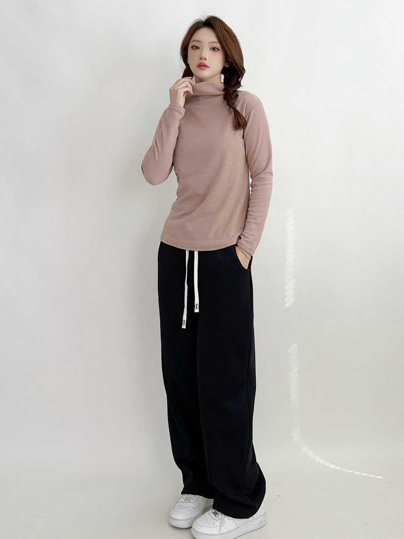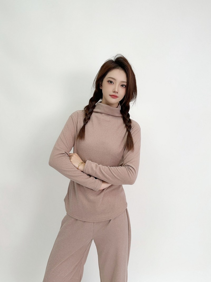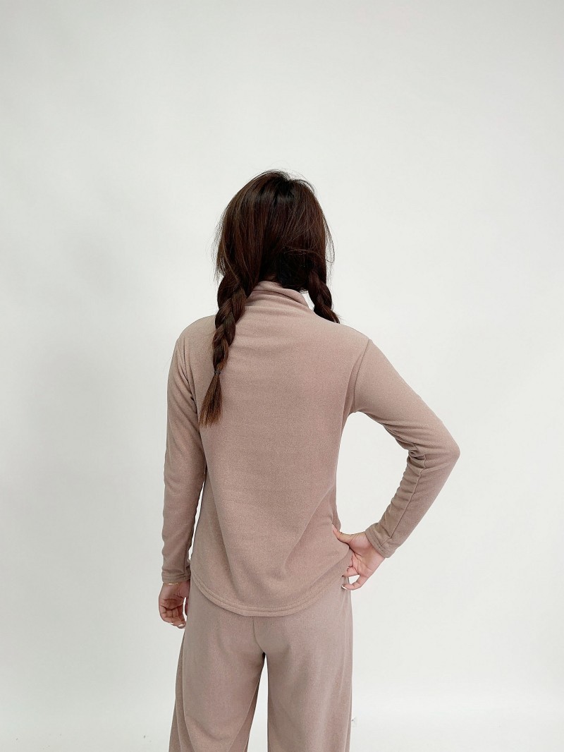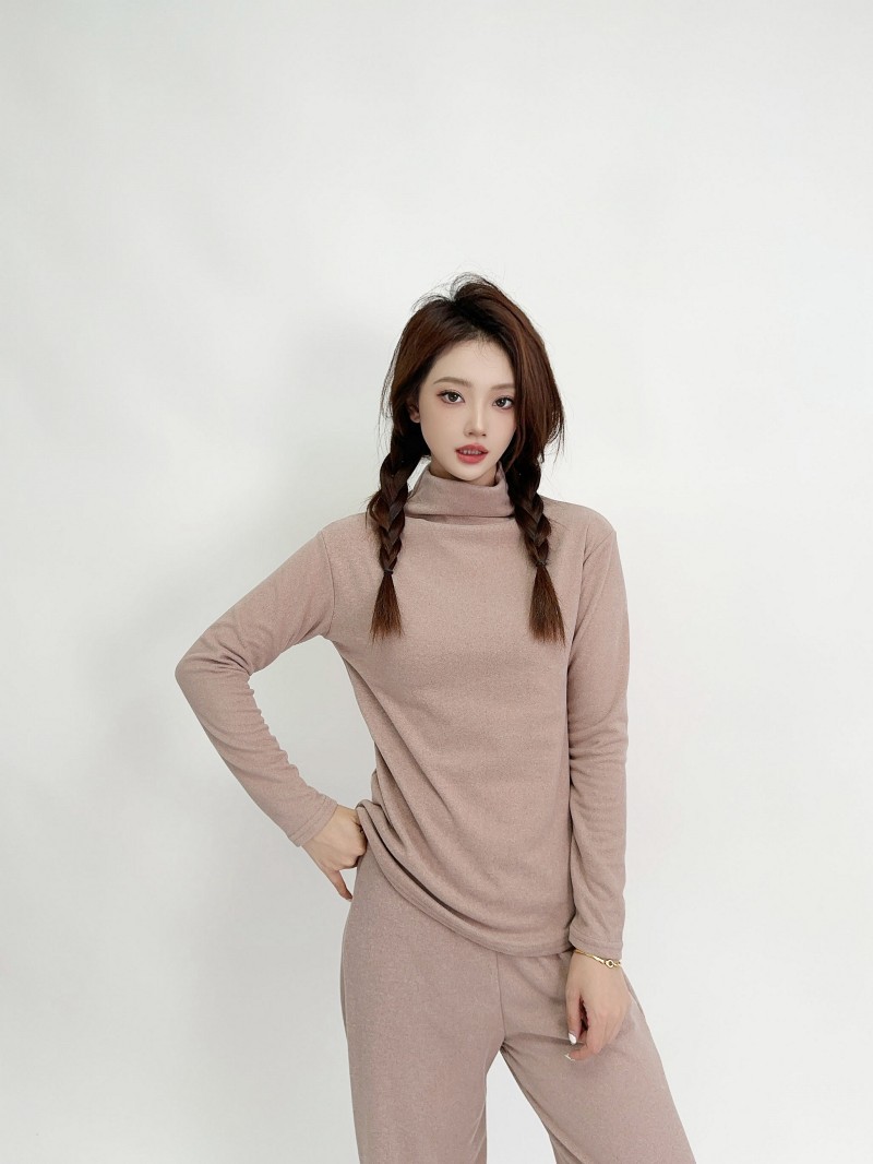 실크 캐시미어 모크 칼라베이스 셔츠 여성용 가을과 겨울 기모 긴 소매 따뜻한 옷 서양식 슬리밍 내부 탑스토어 가기