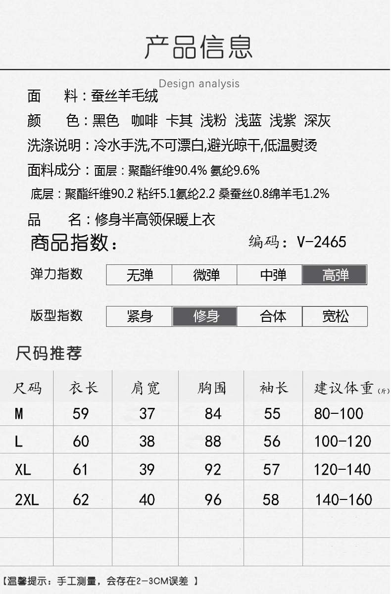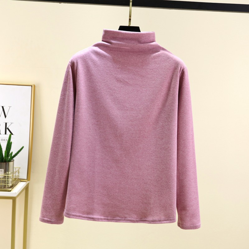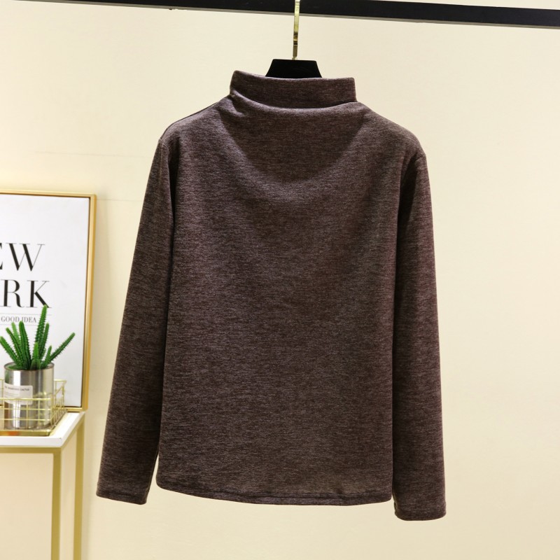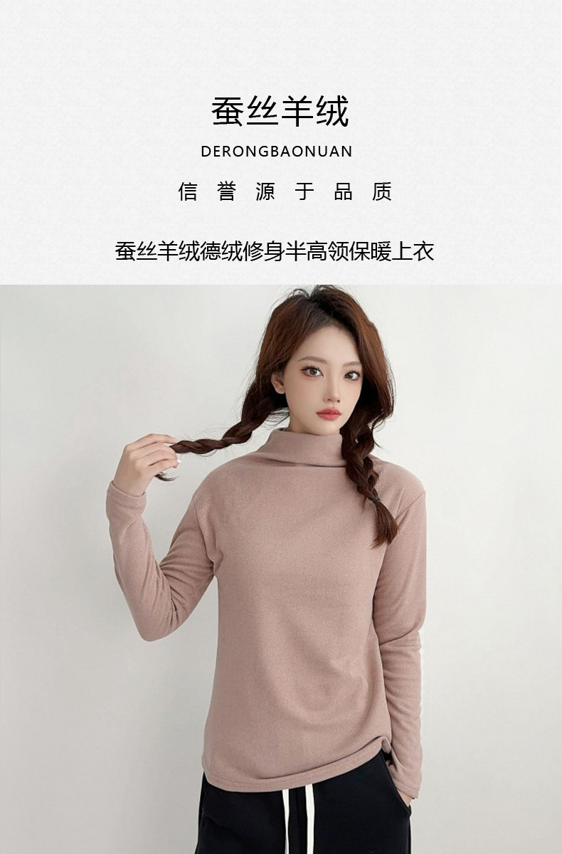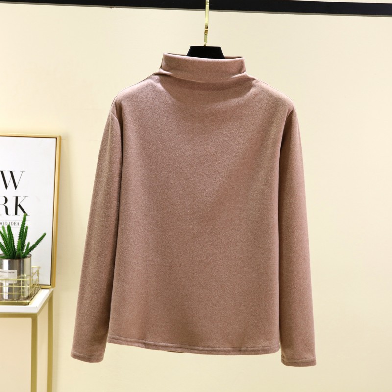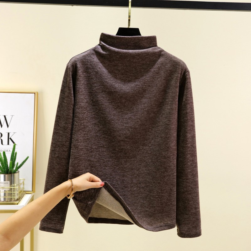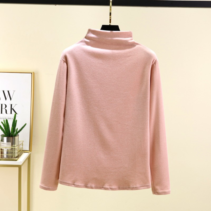 실크 캐시미어 모크 칼라베이스 셔츠 여성용 가을과 겨울 기모 긴 소매 따뜻한 옷 서양식 슬리밍 내부 탑