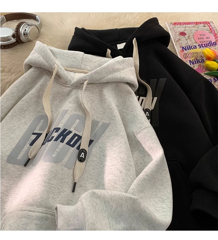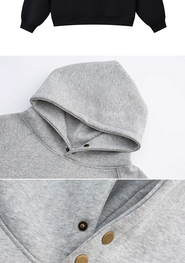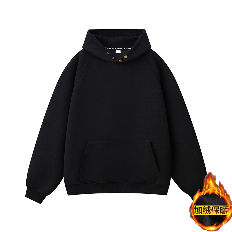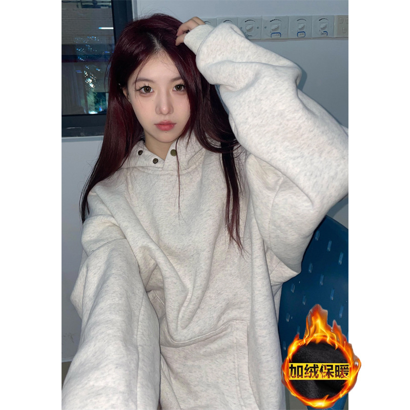 미국 버튼 후드 솔리드 컬러 땀 무거운 긴 소매 남성과 여성의 새로운 풀오버 느슨한 올 매치 그레이 겨울 기모