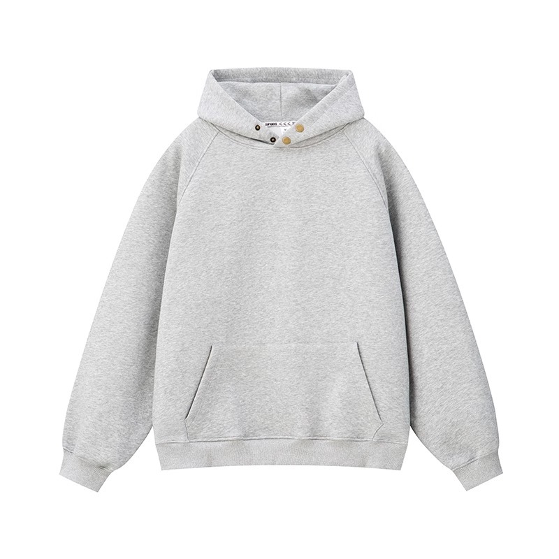 미국 버튼 후드 솔리드 컬러 땀 무거운 긴 소매 남성과 여성의 새로운 풀오버 느슨한 올 매치 그레이 겨울 기모스토어 가기