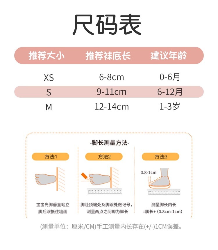 • S 사이즈(6-12개월, 발 길이 9-11cm에 적합)