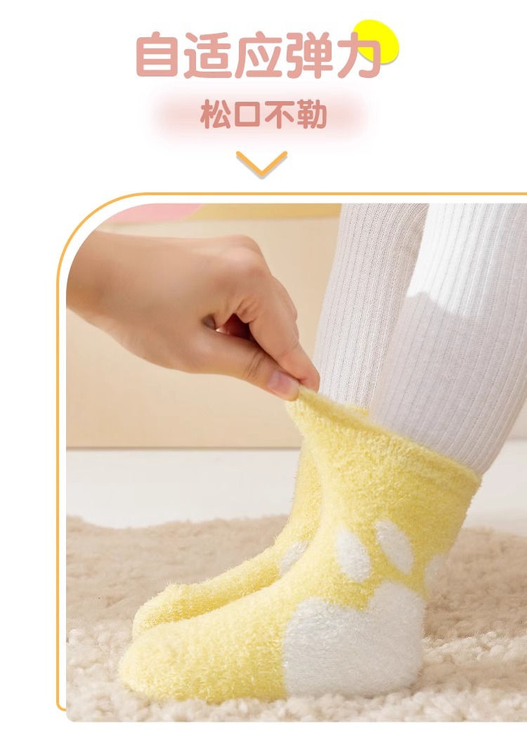 • 여아 스타일 [화이트 핑크 옐로우 화이트 핑크 화이트] 따뜻한 플러시 양말