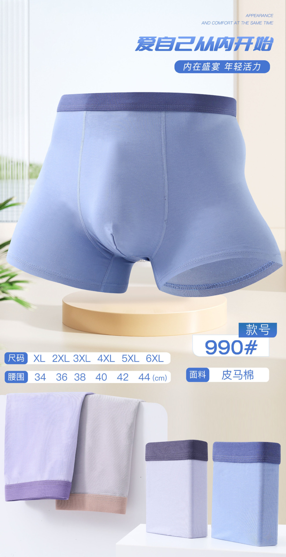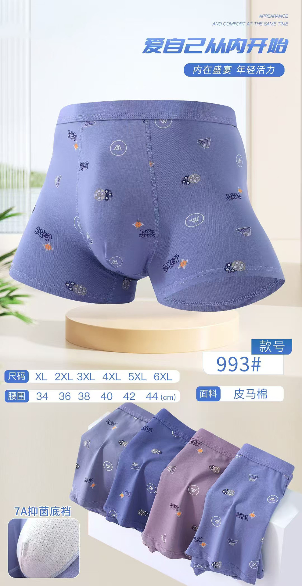 공장 직접 남성 속옷 면 Pimar 면화 남성용 Modell 코튼 항균 7a 플러스 비료 증가 복서 속옷스토어 가기