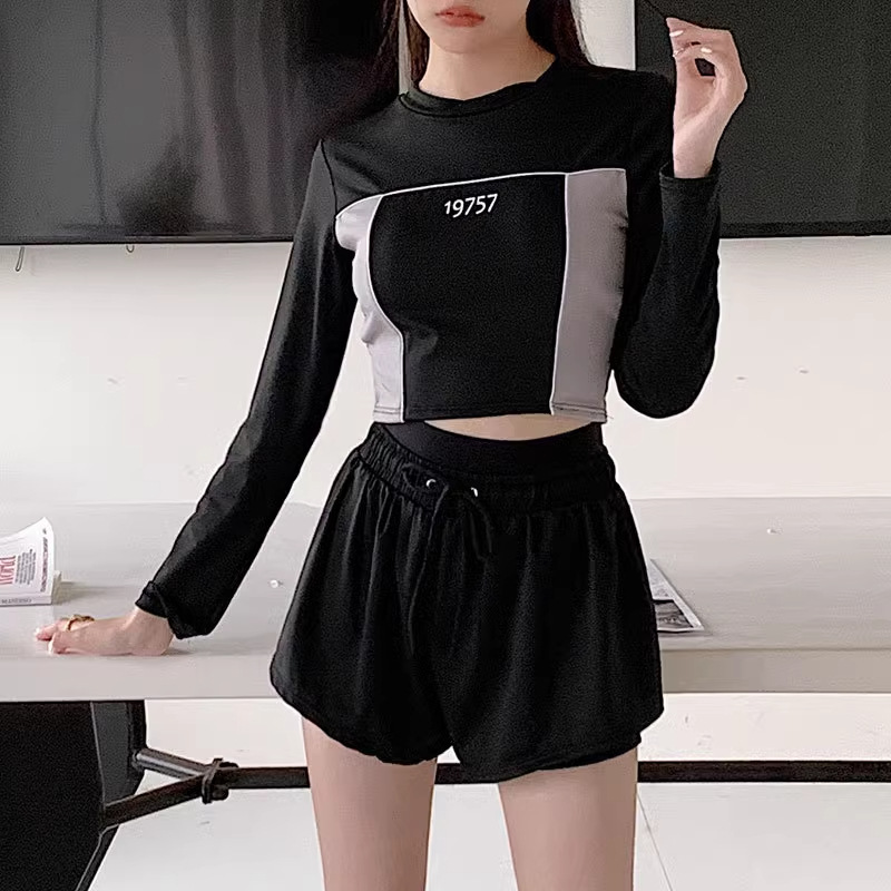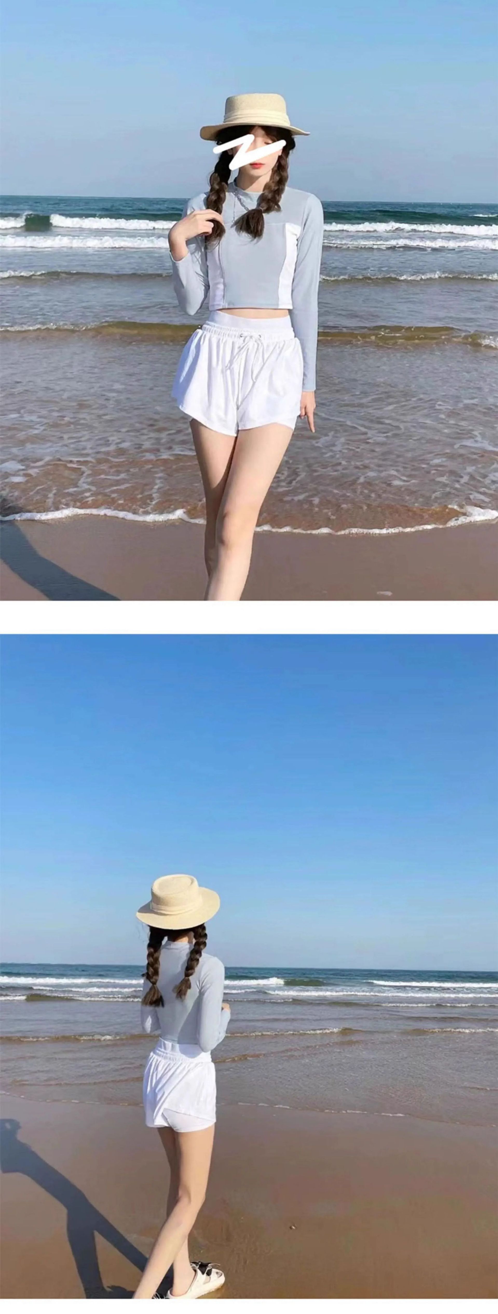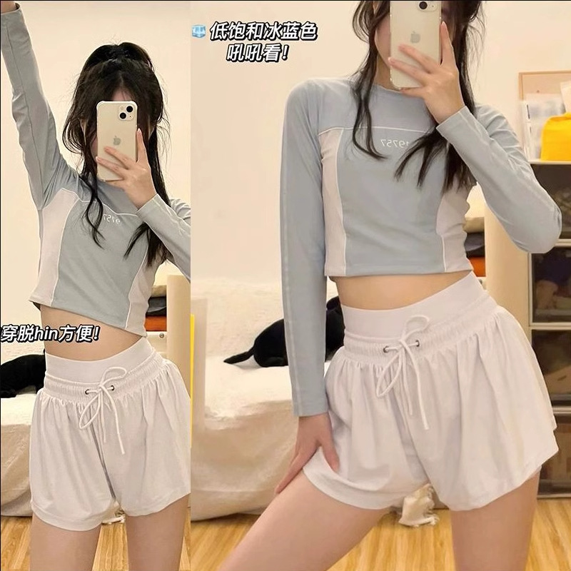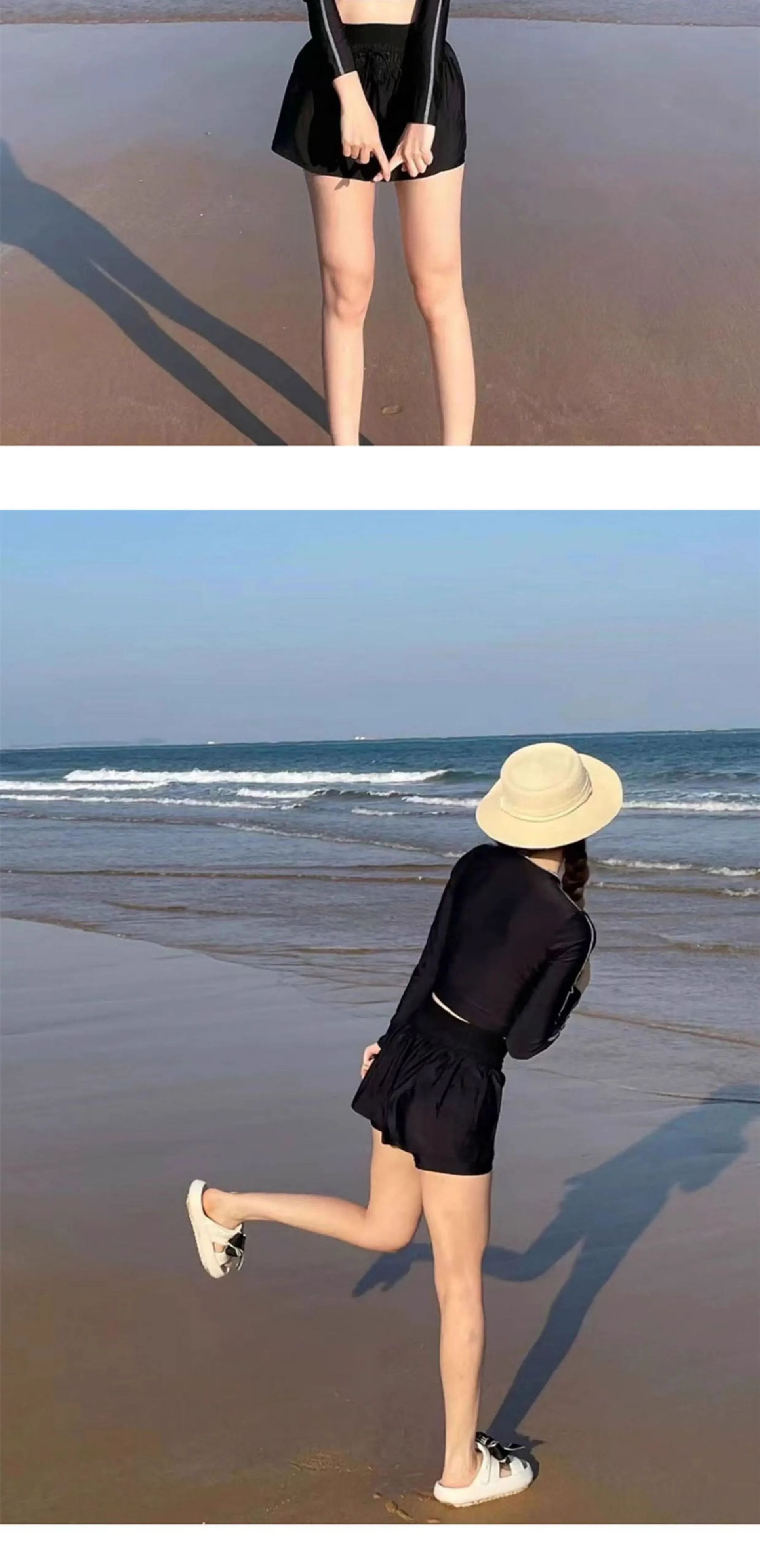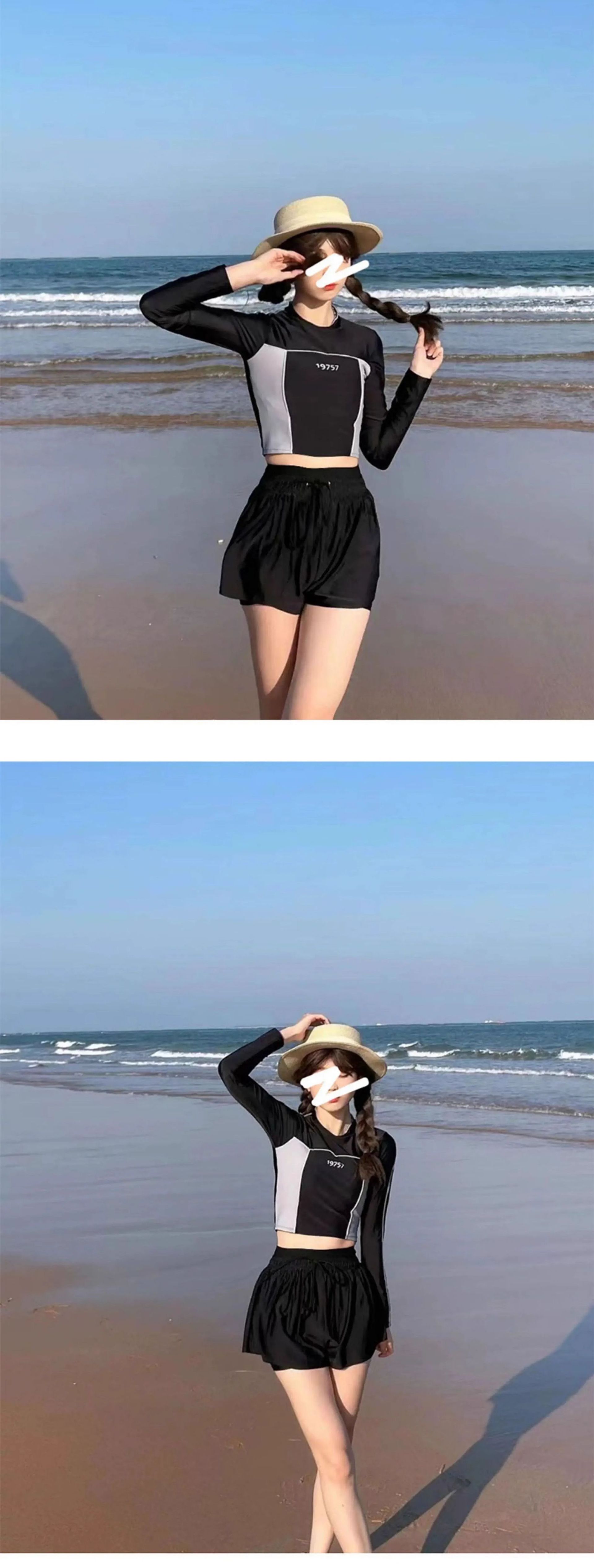수영복 여성 분할 보수적 인 순수한 욕망 바람둥이 뚱뚱한 소녀의 살을 가리는 슬리밍 배꼽 덮음 긴 소매 태양 보호 플랫 뿔 학생