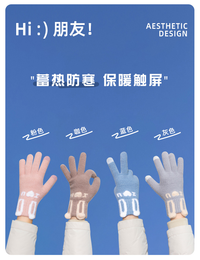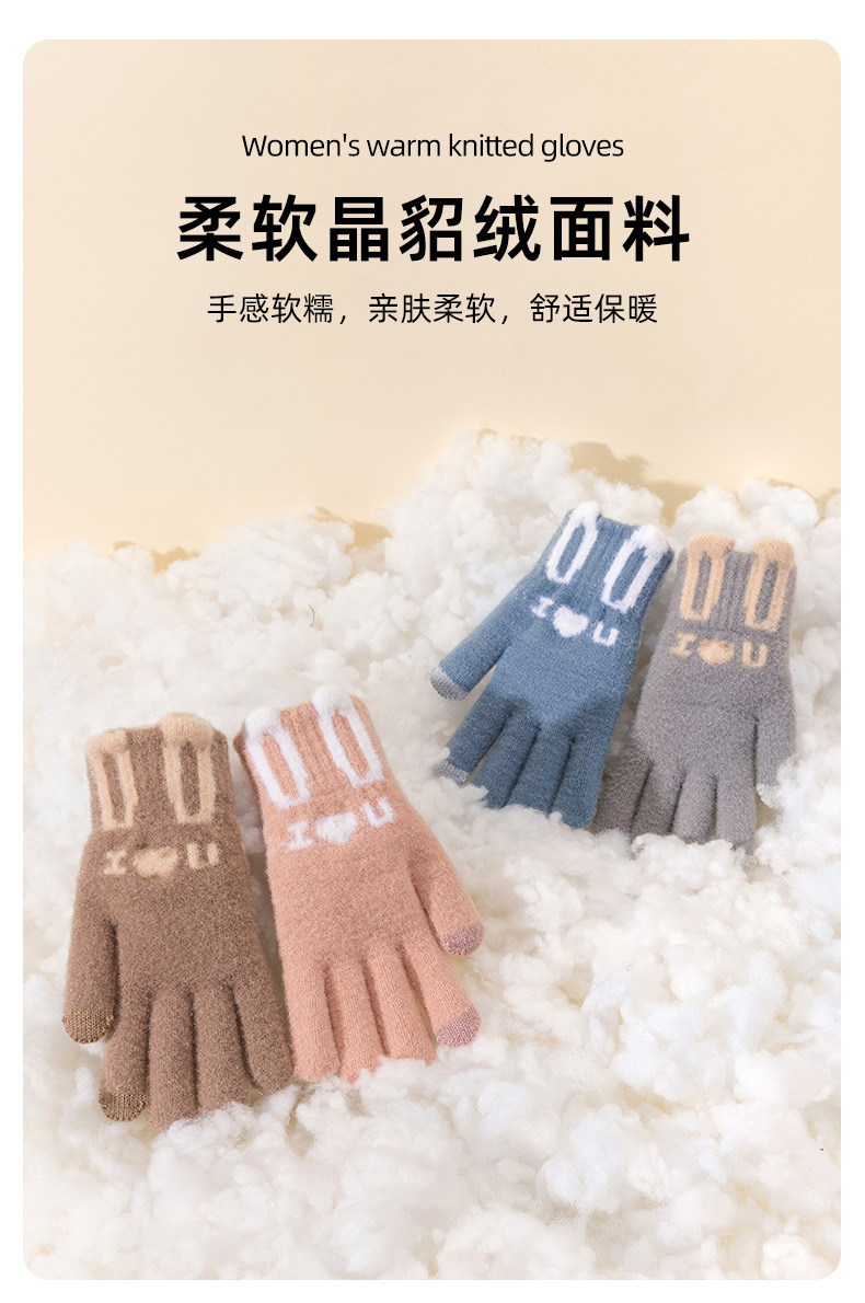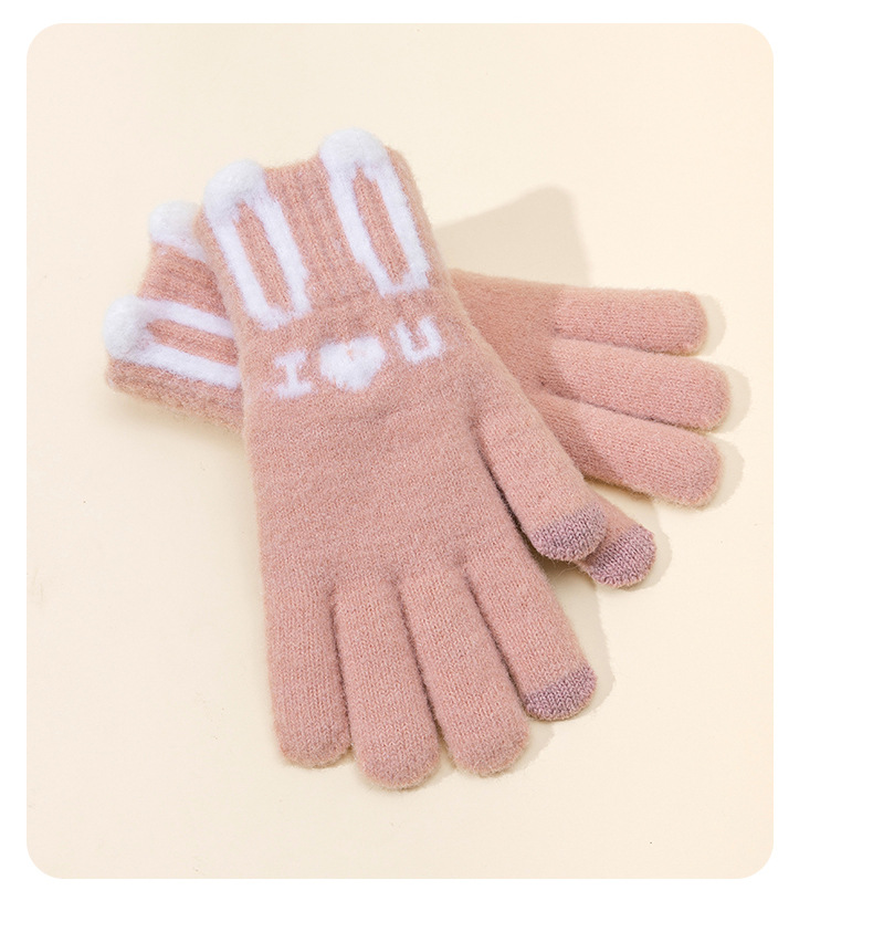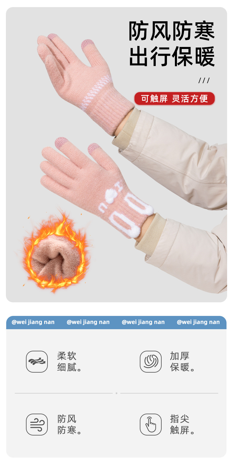장갑 여자의 겨울 터치 스크린 니트 감기 방지 두꺼운 따뜻한 벨벳 귀여운 승마 손가락 학생 장갑