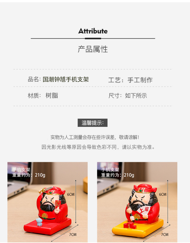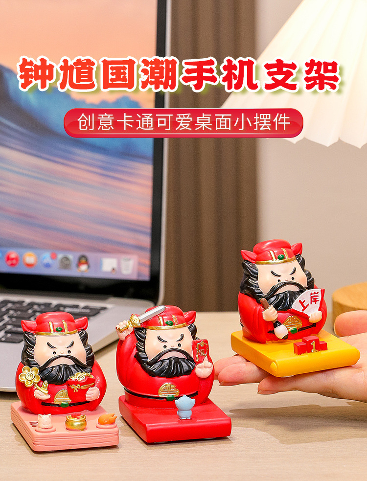 중국 스타일 국가 조수 불멸의 종 쿠이 핸드셋 크리에이티브 스테이션 압축 브래킷 오피스 데스크탑 장식품 문화 및 창조적 인 선물