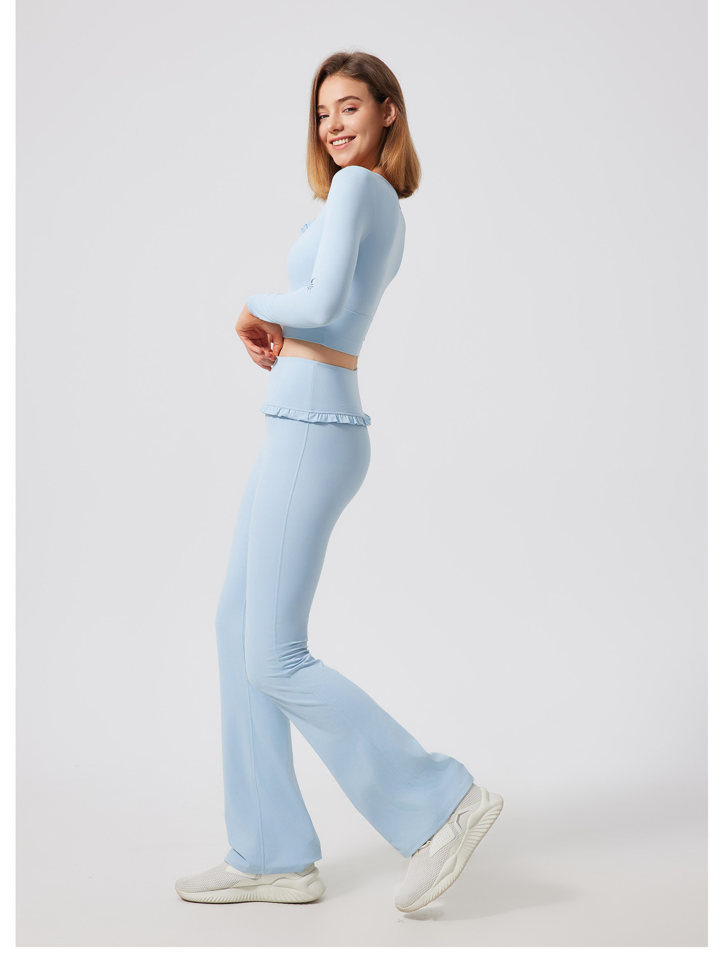 가을과 겨울 알몸 레이스 요가 세트 긴 소매 반 고정 컵 러닝 슬림핏 스포츠 브라 통기성 피트니스 세트 탑스토어 가기