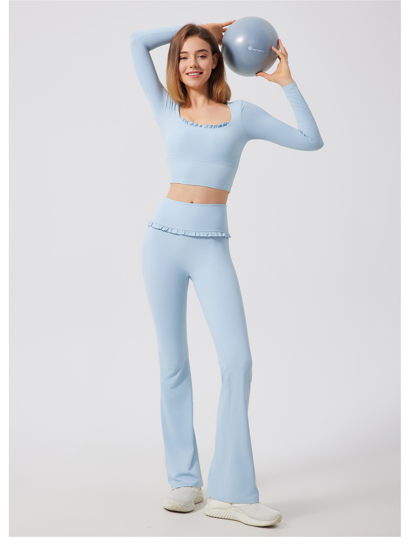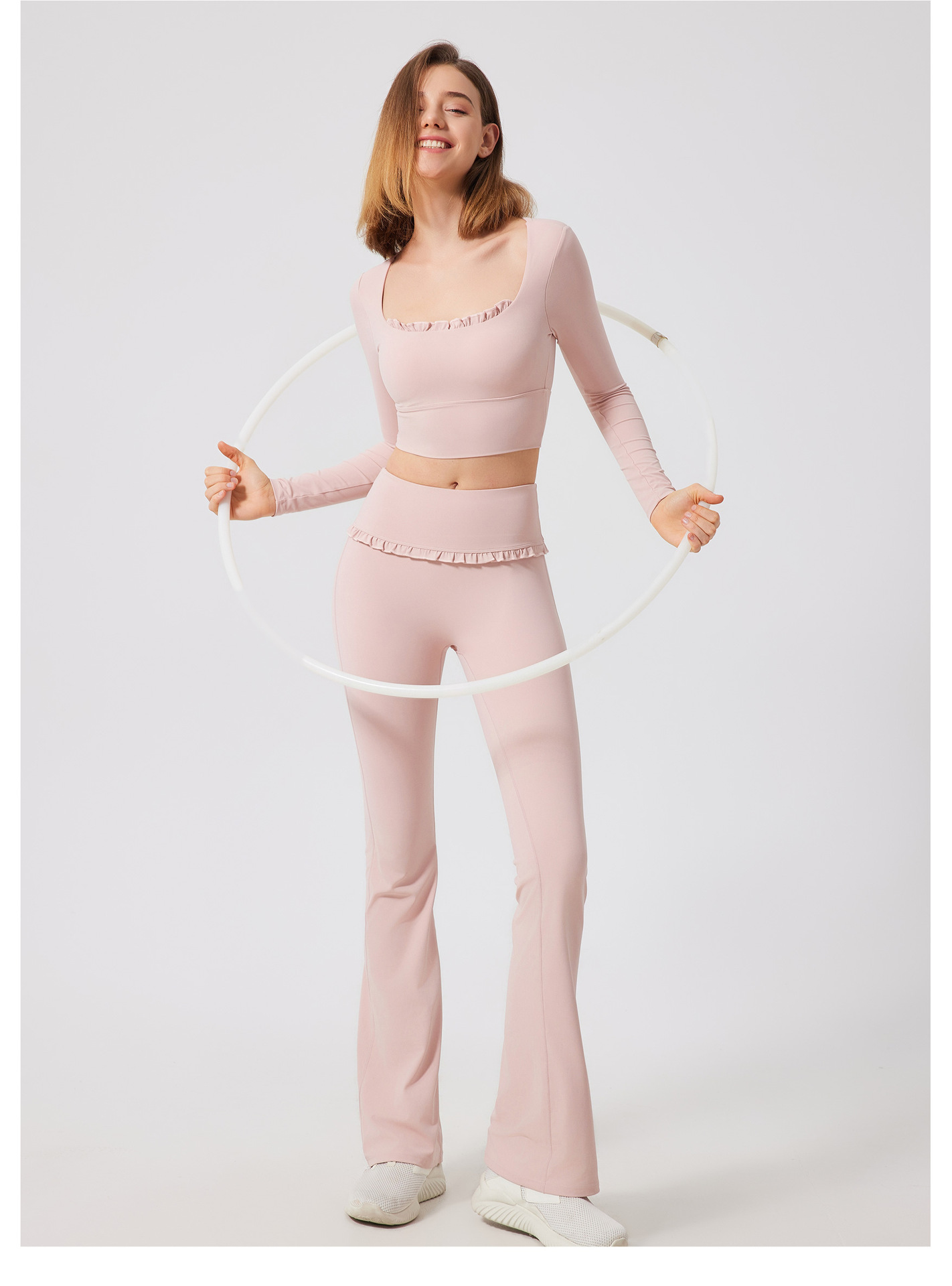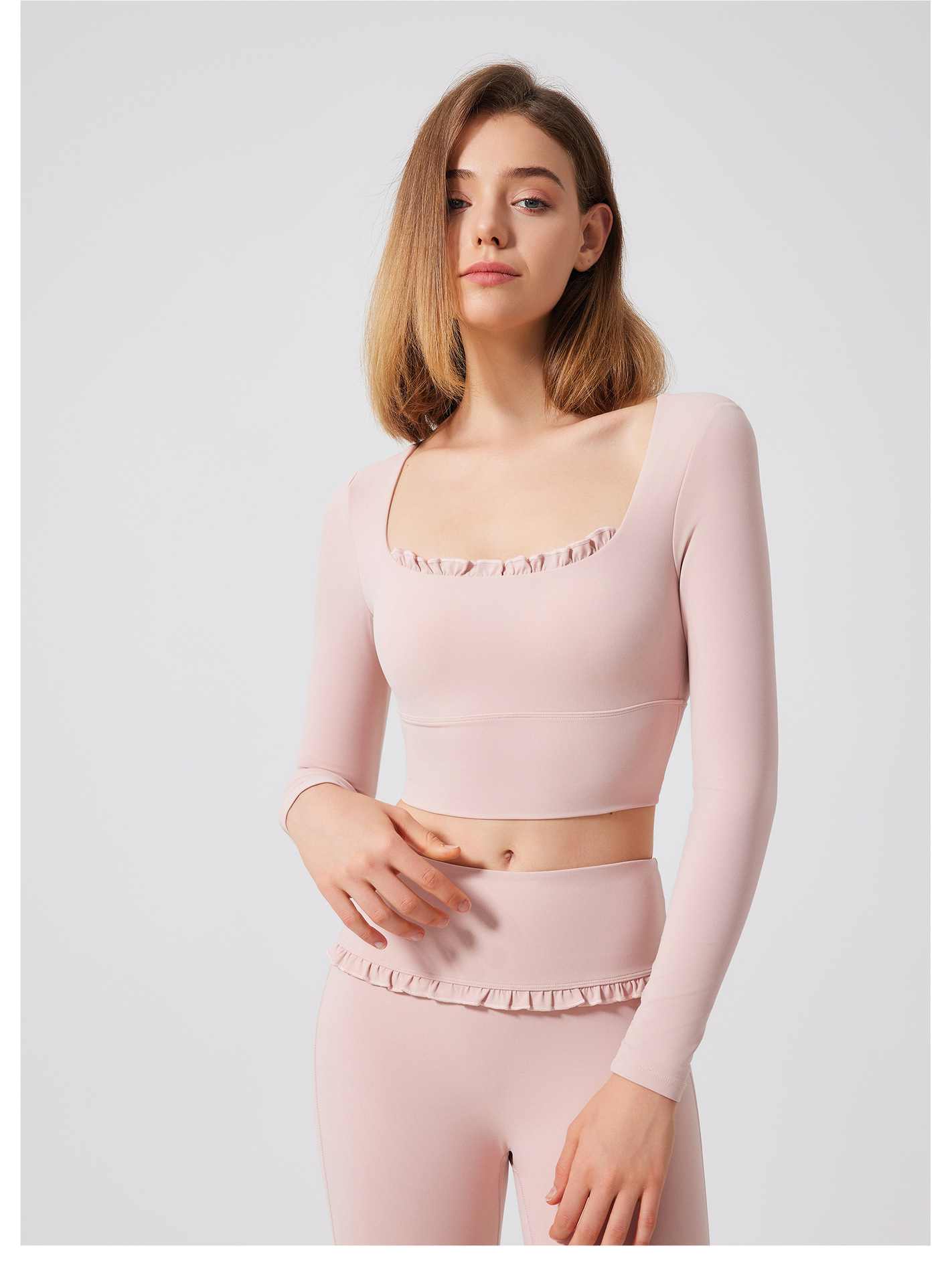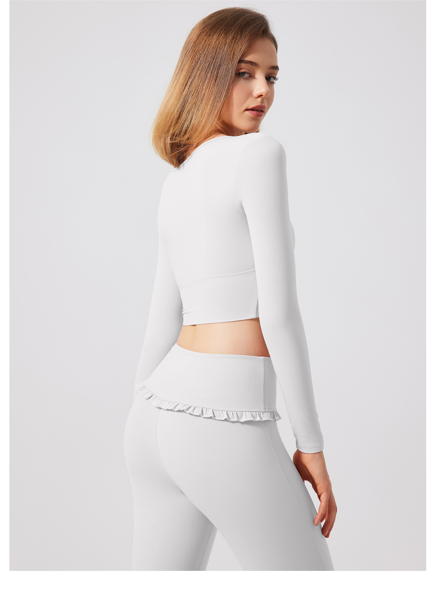 가을과 겨울 알몸 레이스 요가 세트 긴 소매 반 고정 컵 러닝 슬림핏 스포츠 브라 통기성 피트니스 세트 탑