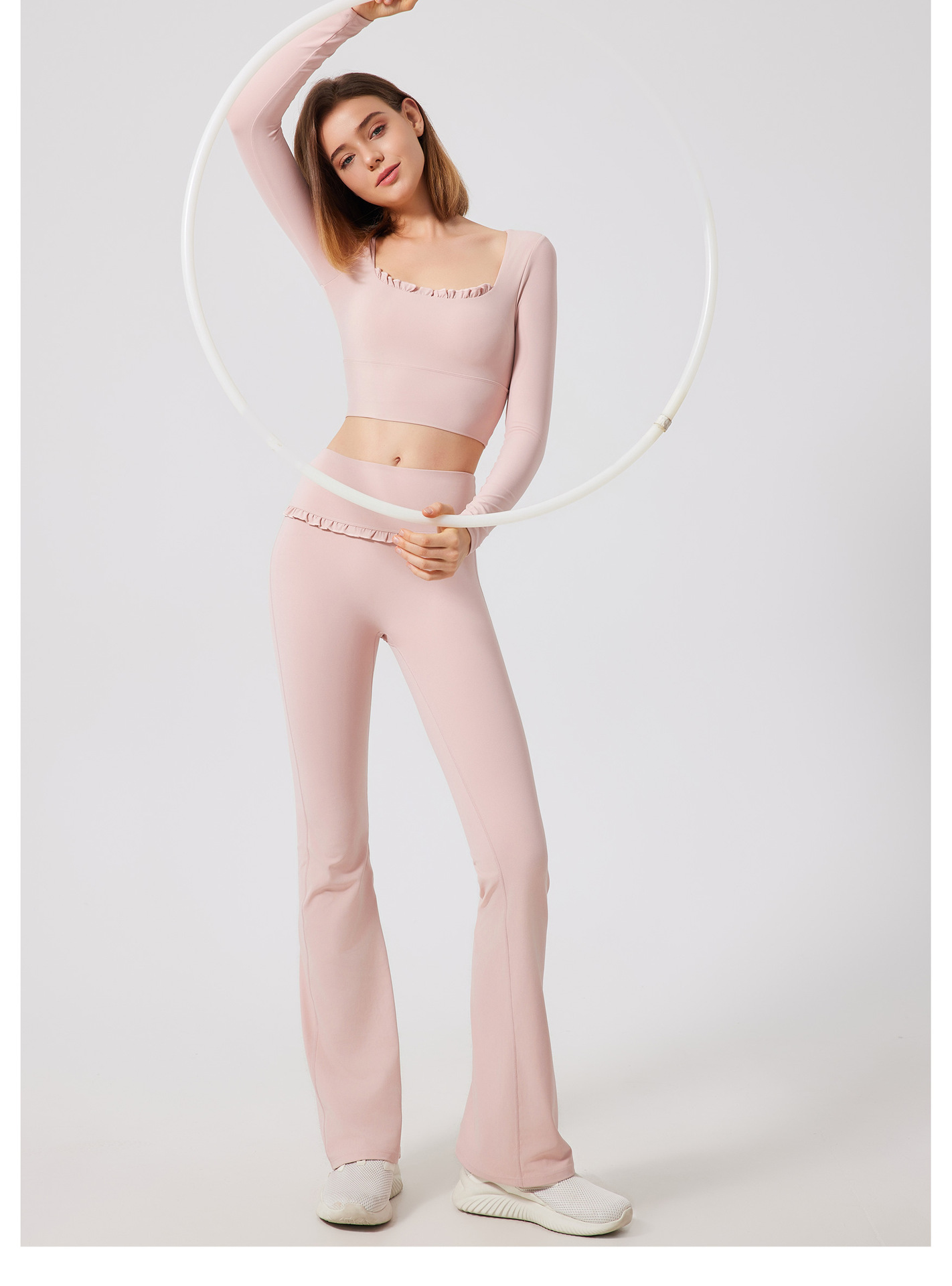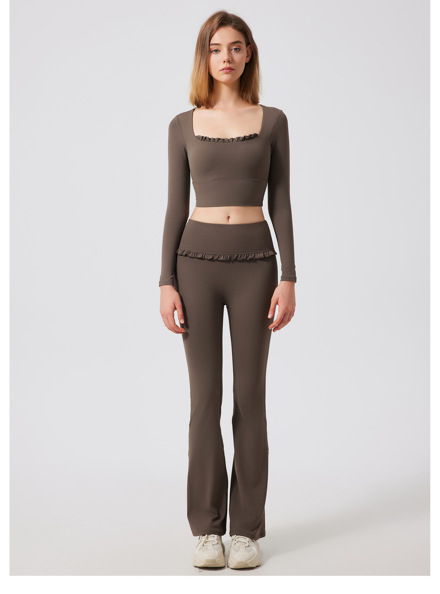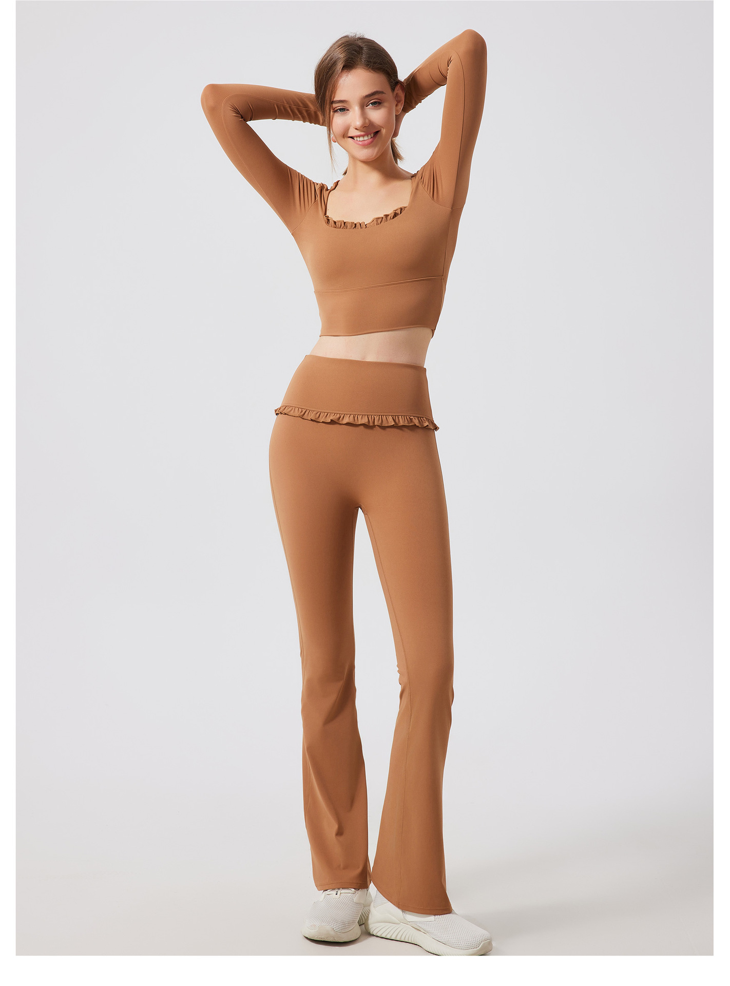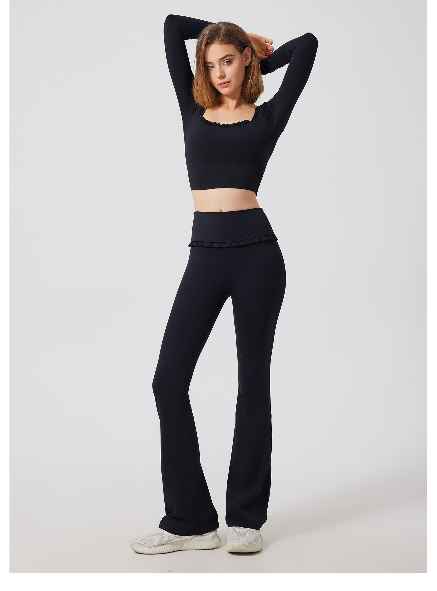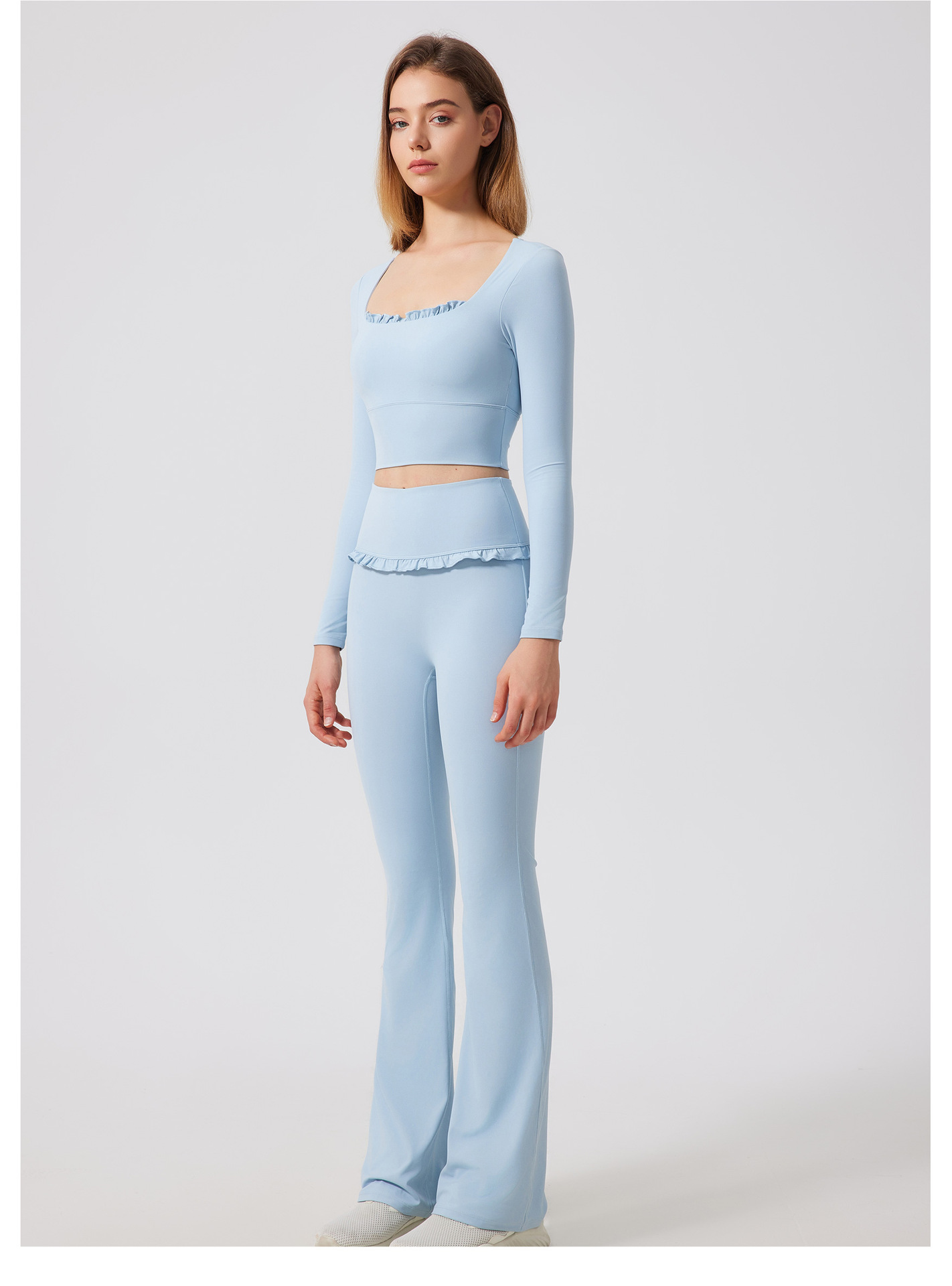 가을과 겨울 알몸 레이스 요가 세트 긴 소매 반 고정 컵 러닝 슬림핏 스포츠 브라 통기성 피트니스 세트 탑