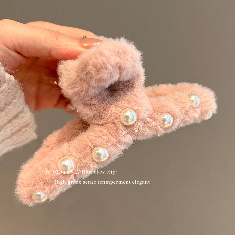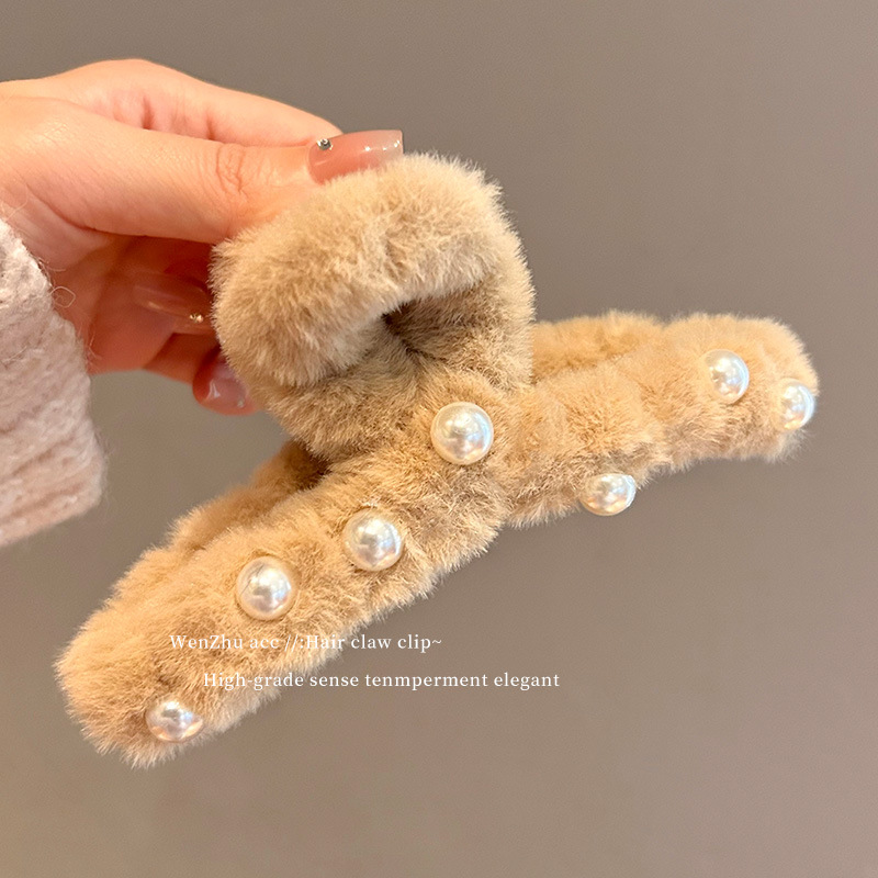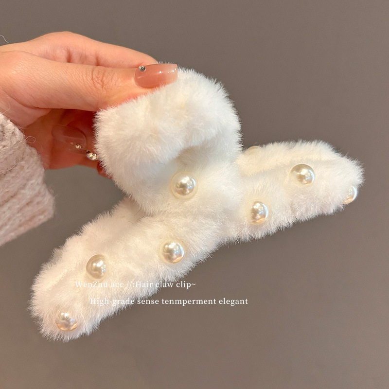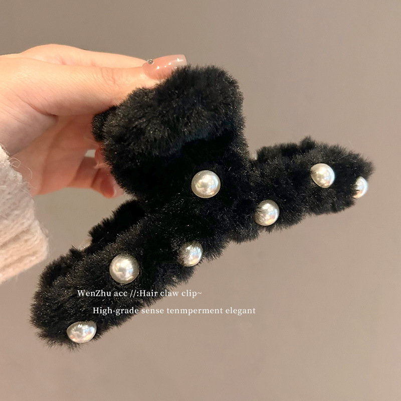 가을과 겨울 봉제 진주 클립 대형 클립 헤드웨어 헤어 핀 여성용 머리 머리 상어 클립
